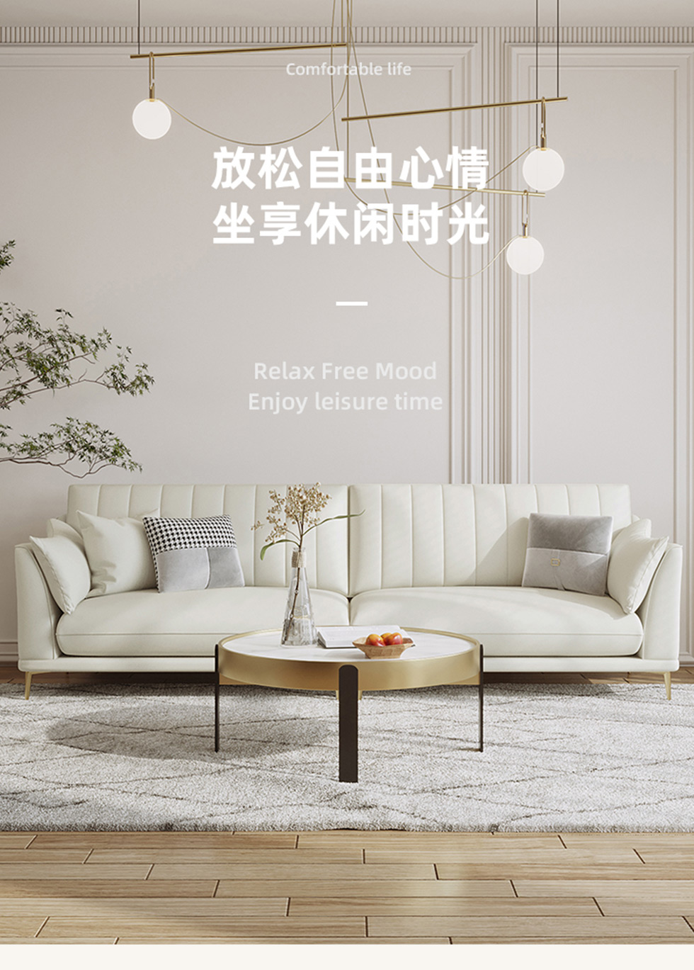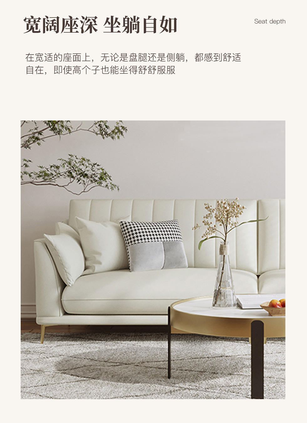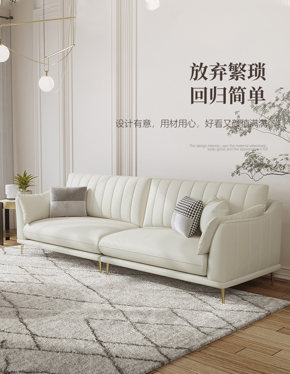 云端 奶油风 超纤皮+高密度海棉+乳胶+公仔棉+金色五金脚米白色 三人位 2.2米沙发