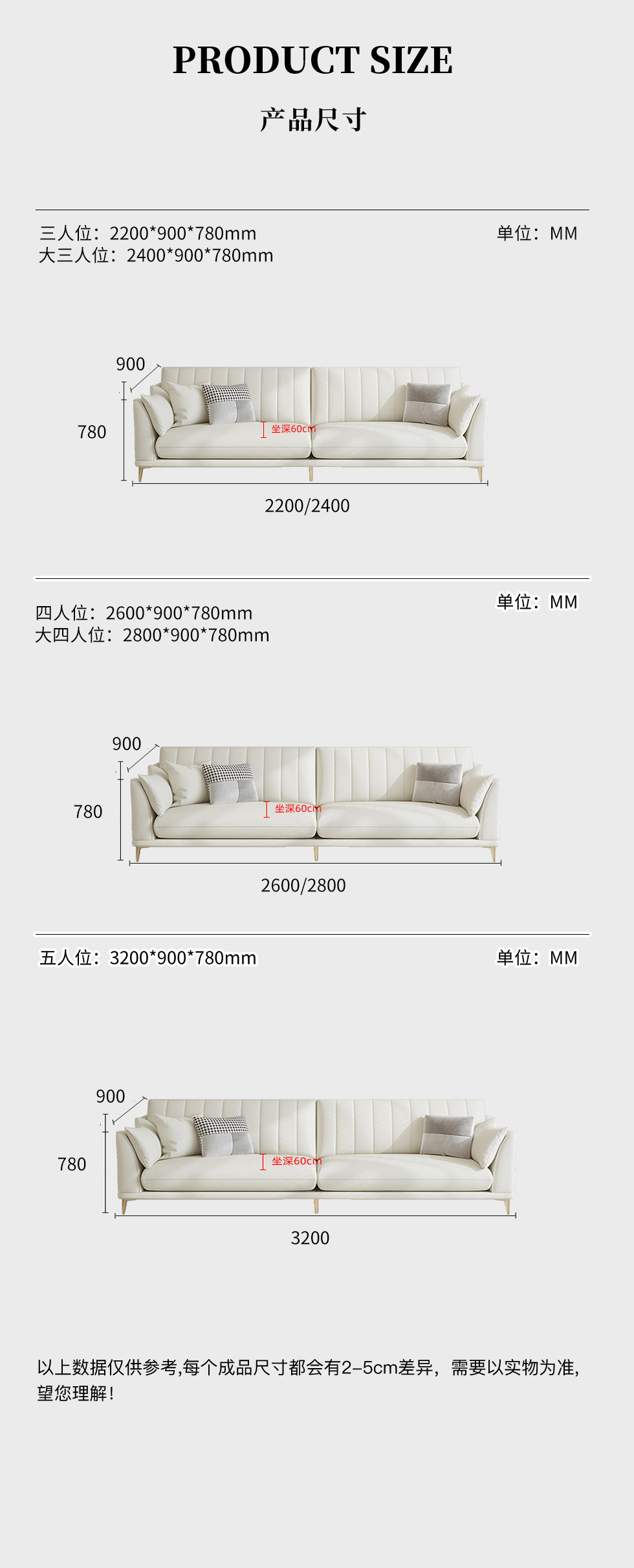 云端 奶油风 超纤皮+俄罗斯进口落叶松内架米白色 三人位 2.4米沙发¥6841