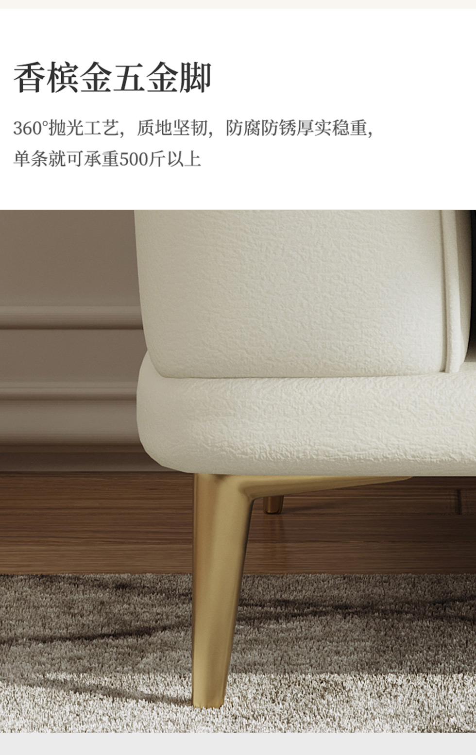 云端 奶油风 羊羔绒布料+抛光实木内架+合成板材框架+坐包填充高密度纯海绵+5公分实木圆脚 米白色 2.7米四人位+圆凳¥5387