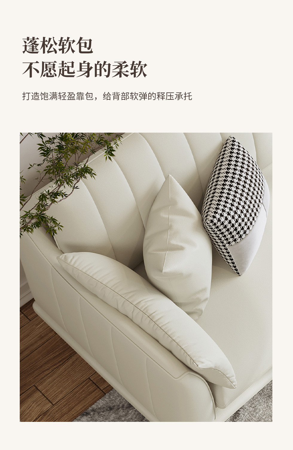云端 奶油风 超纤皮+高回弹海绵+俄罗斯落叶松米白色 三人位 2.24米沙发¥6990