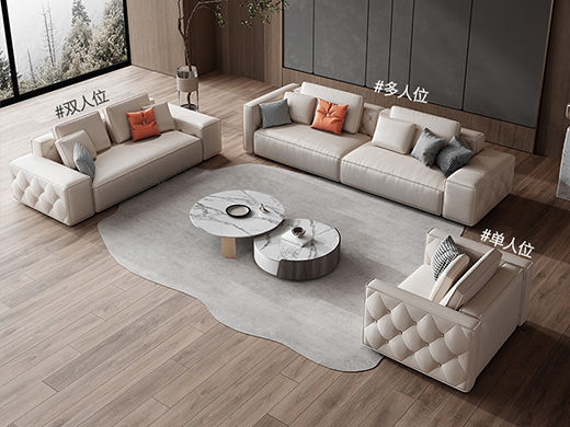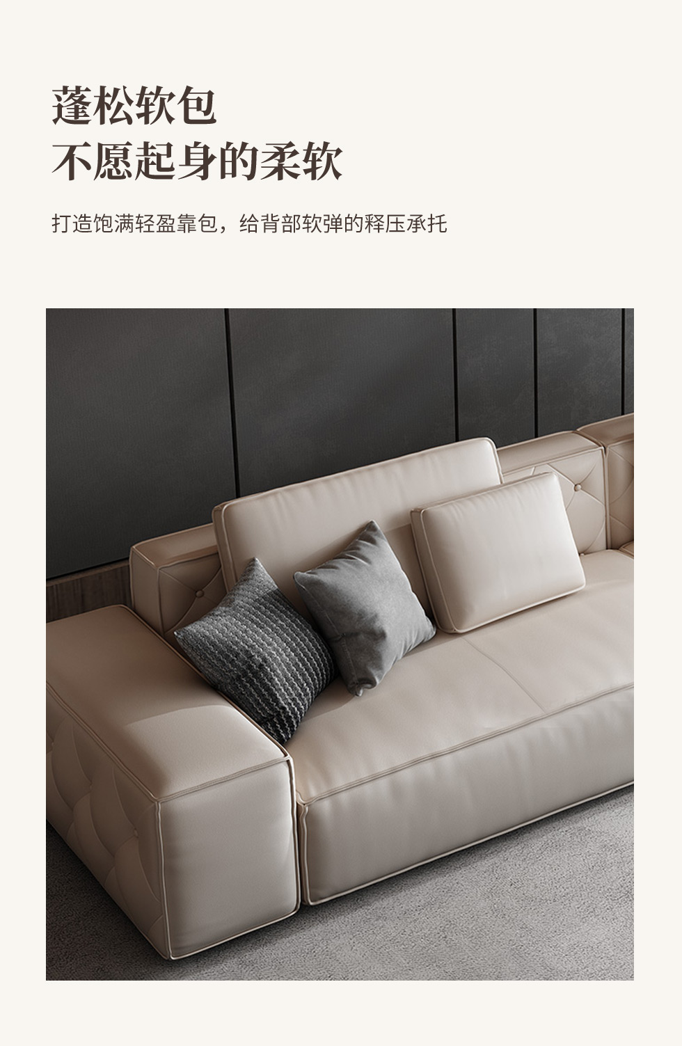 云端 奶油风 超纤皮+高回弹海绵+俄罗斯落叶松 米白色 大三位 网红豆腐块2.4米沙发
