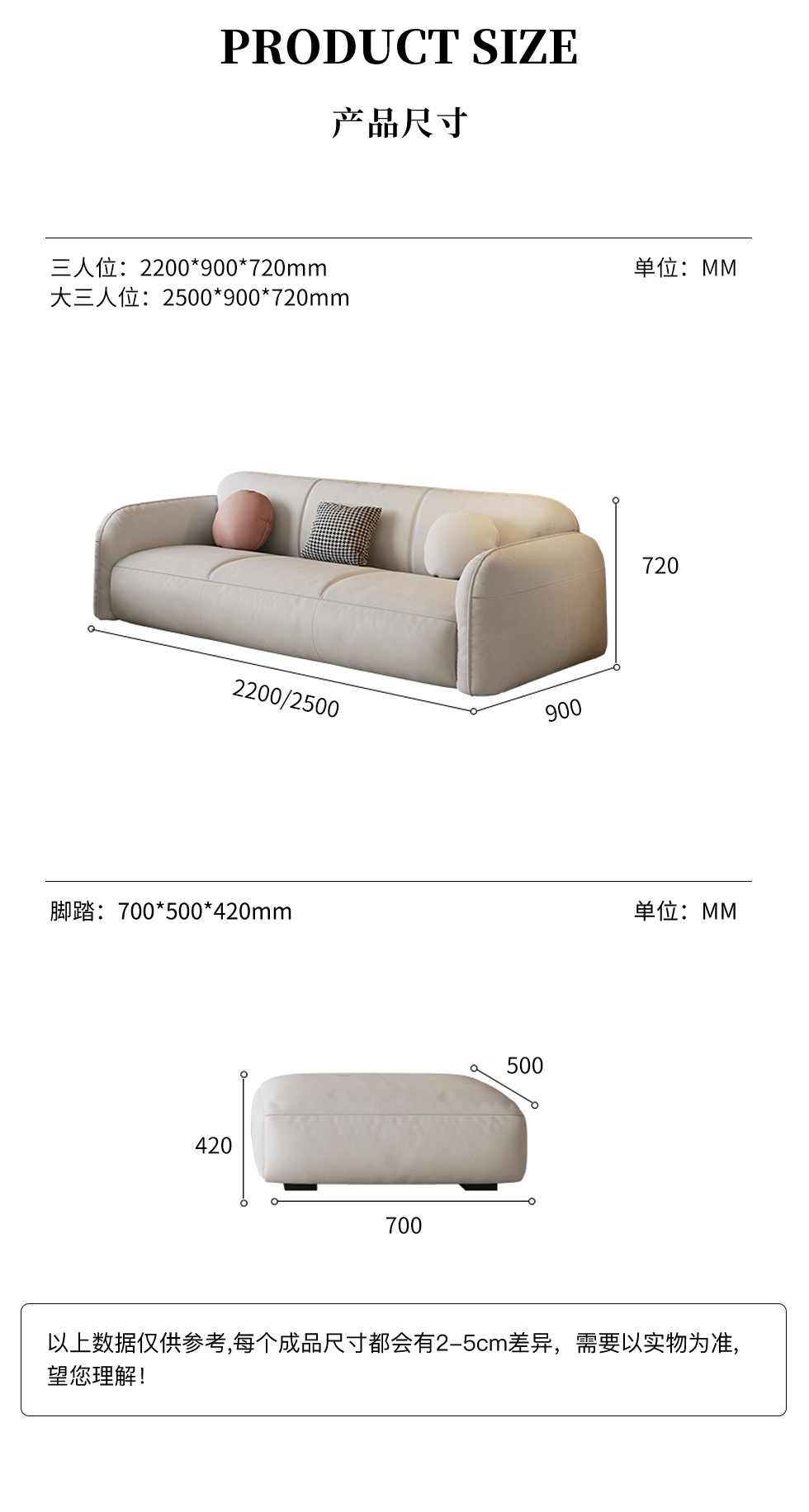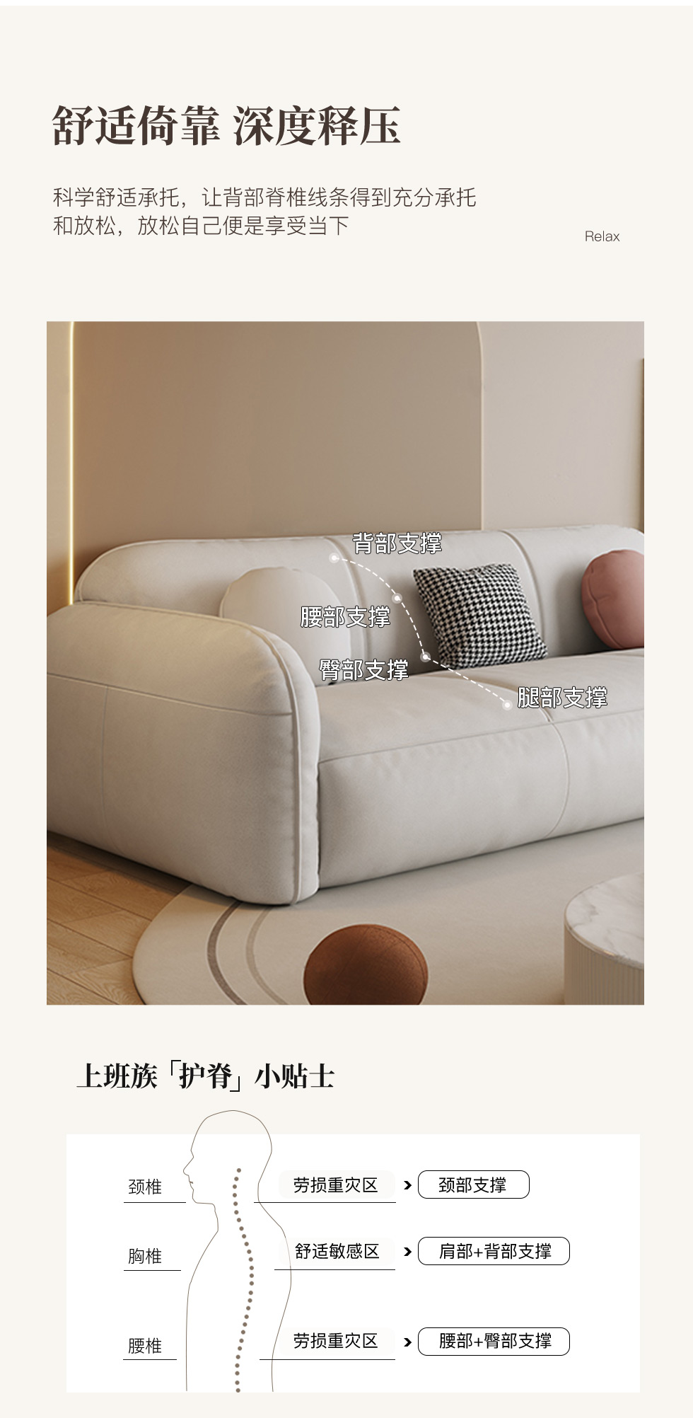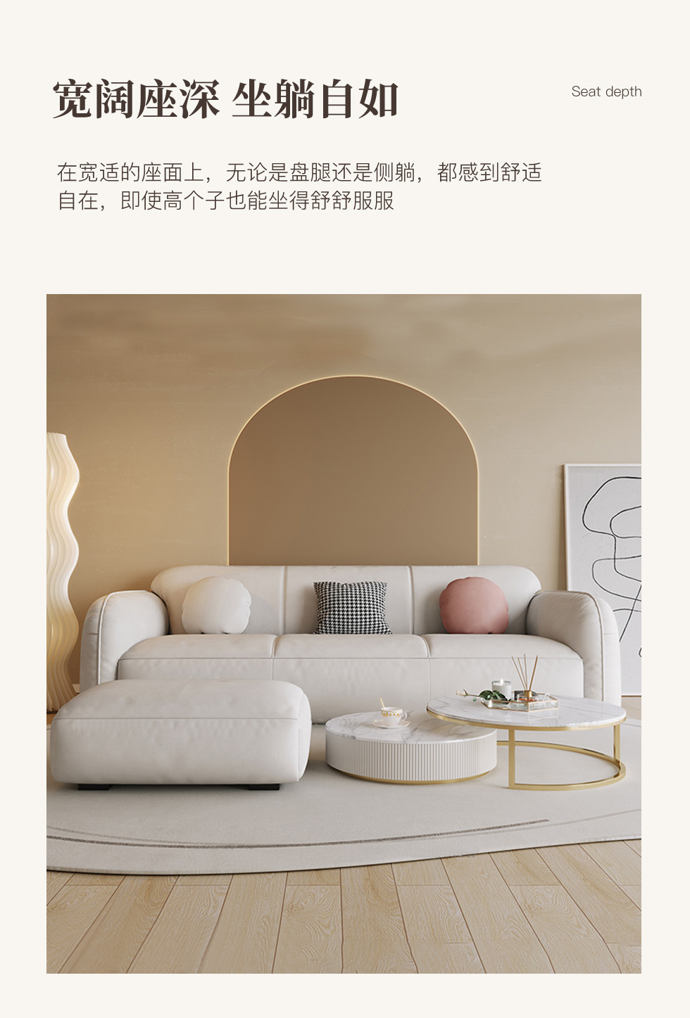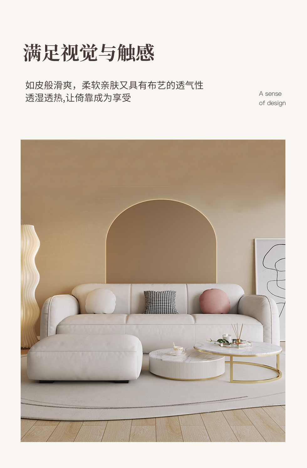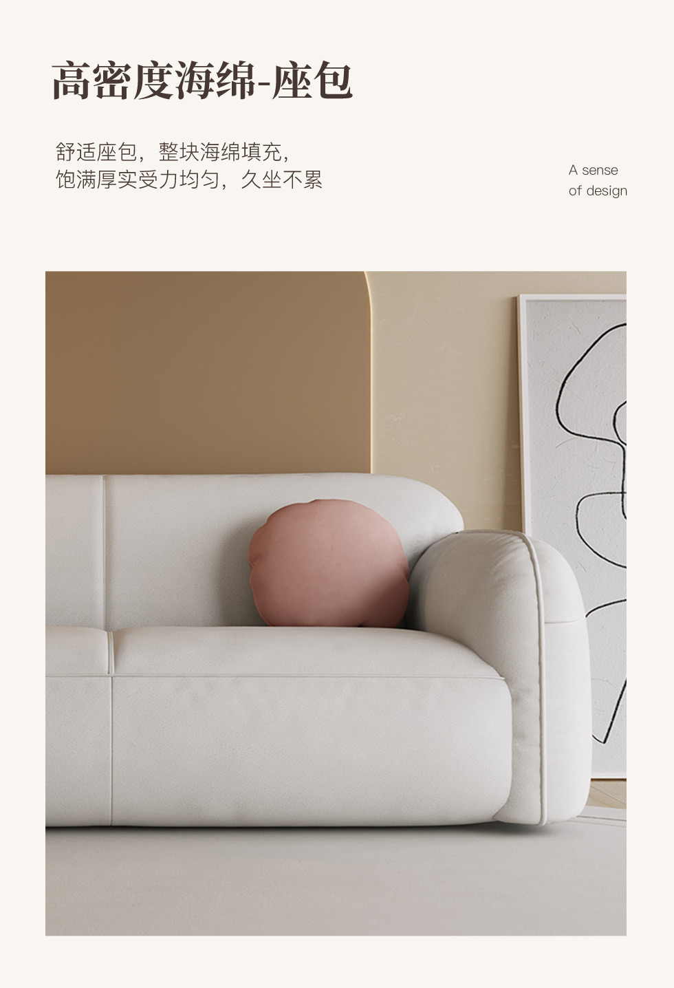 云端 奶油风 超纤皮+全实木内架+乳胶+高密度海棉米白色 三人位2.2米沙发¥6438