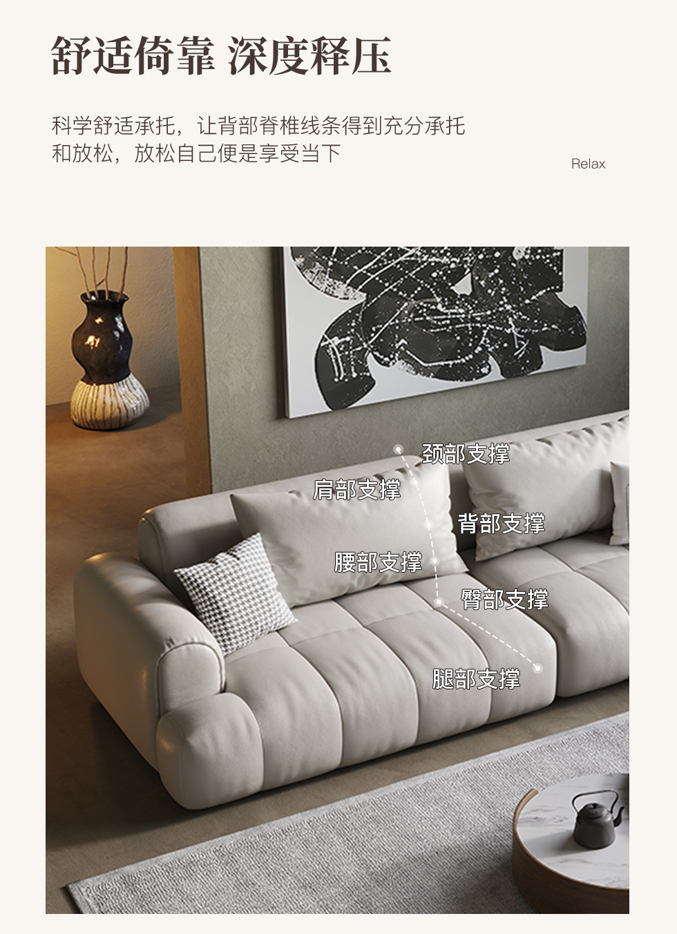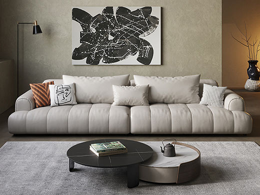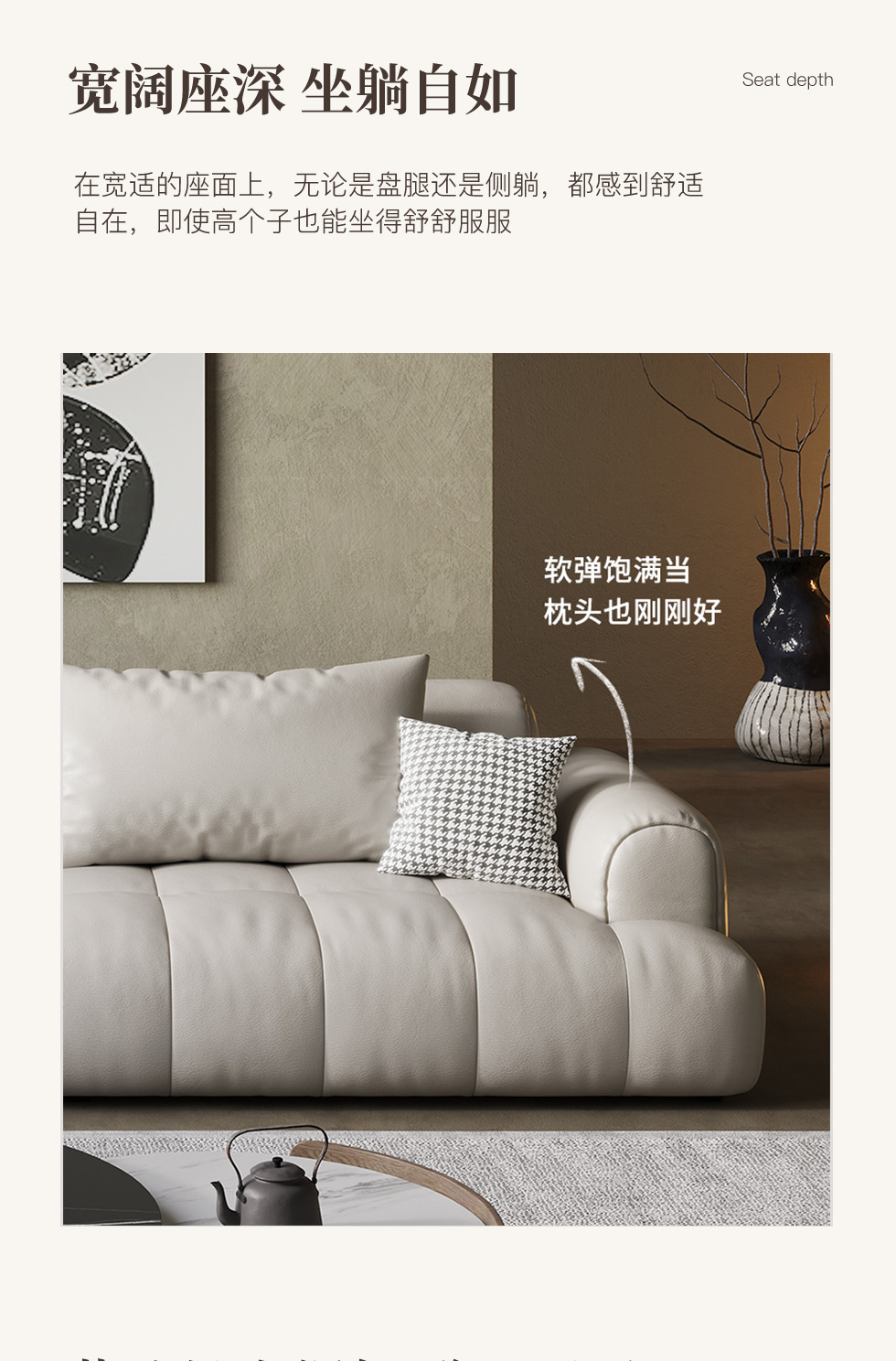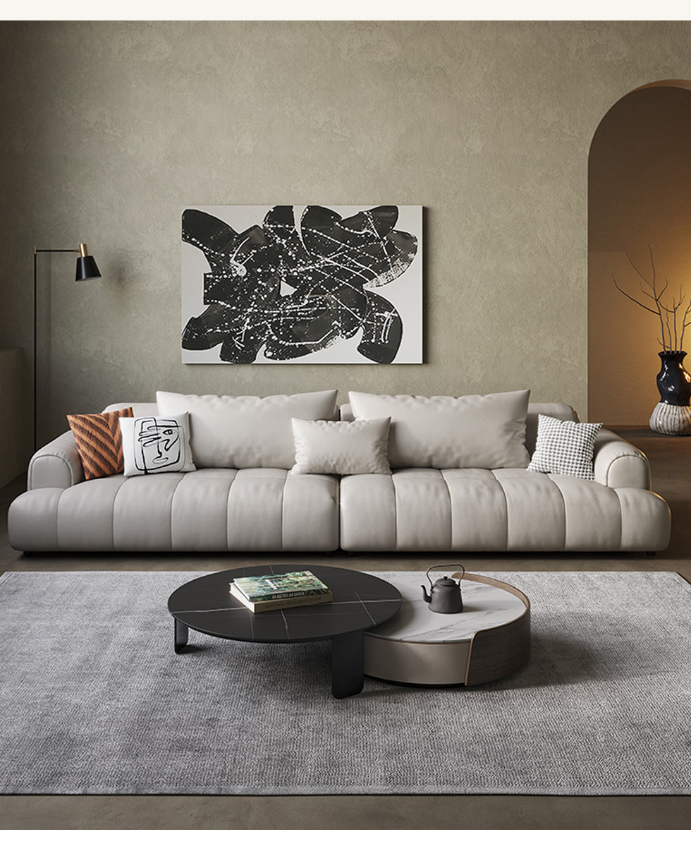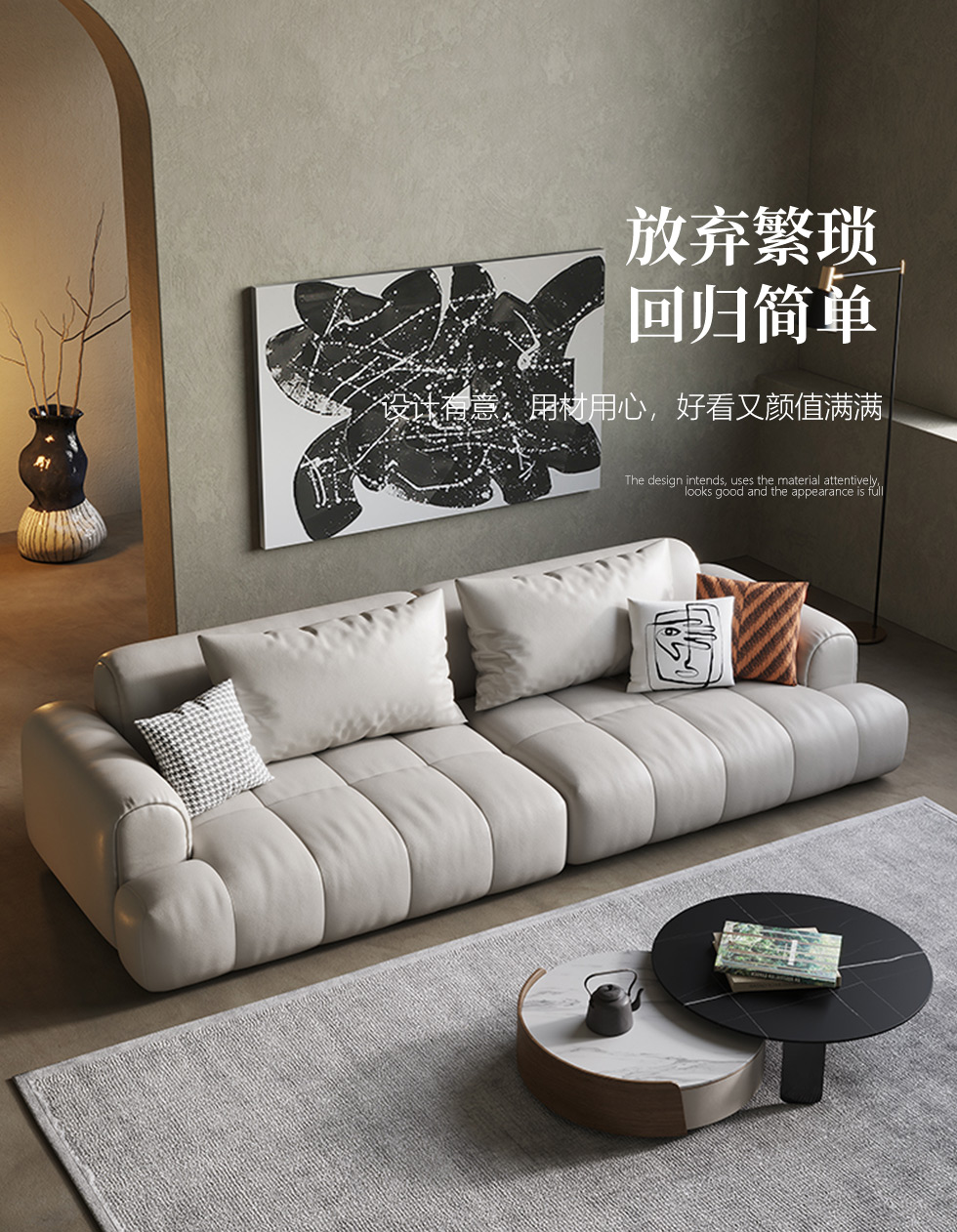 云端 奶油风 超纤皮+高回弹海绵+俄罗斯落叶松 米白色 大三位 网红豆腐块2.4米沙发