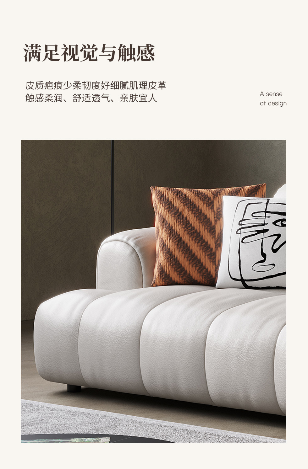 云端 奶油风 超纤皮+全实木内架+乳胶+高密度海棉米白色 三人位 2.3米沙发¥8183