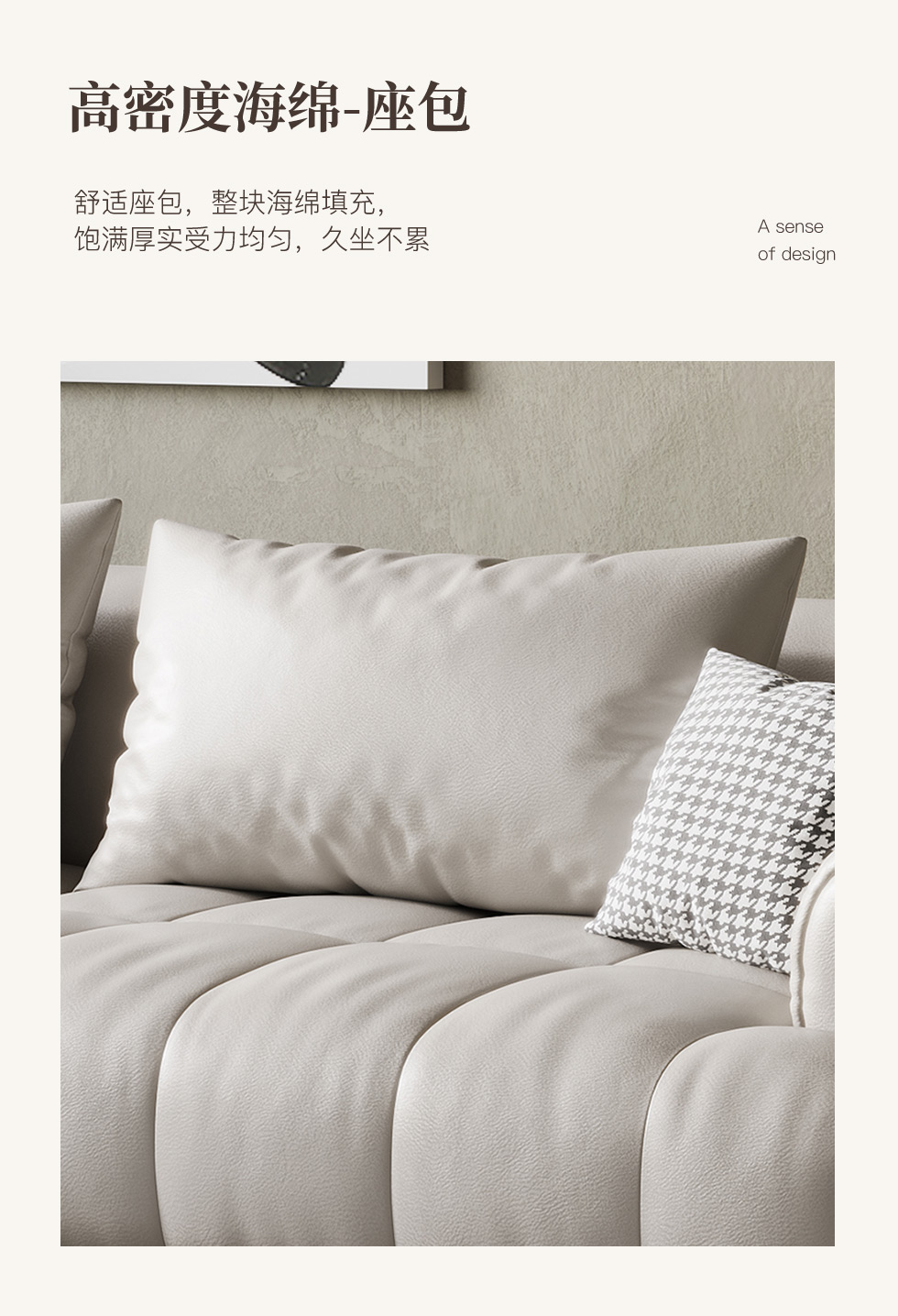 云端 奶油风 超纤皮+全实木内架+乳胶+高密度海棉米白色 三人位2.2米沙发¥6428