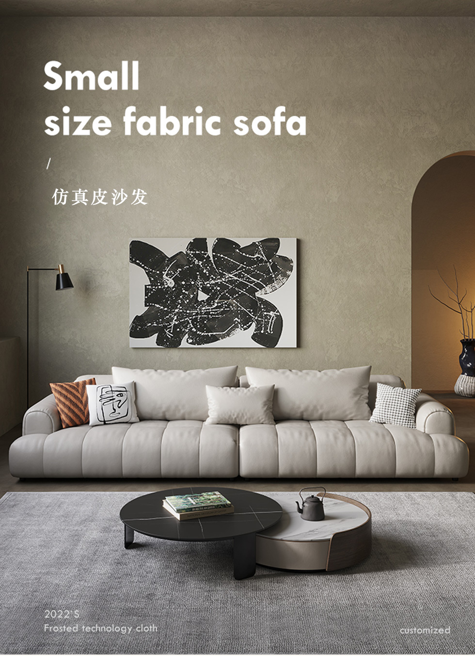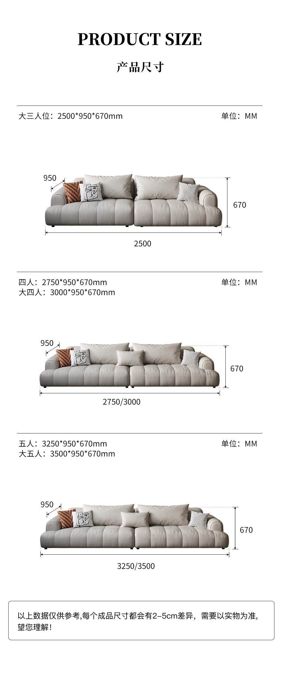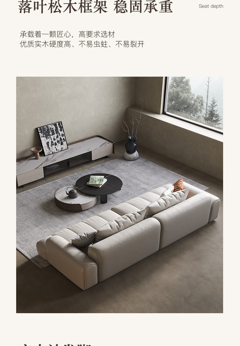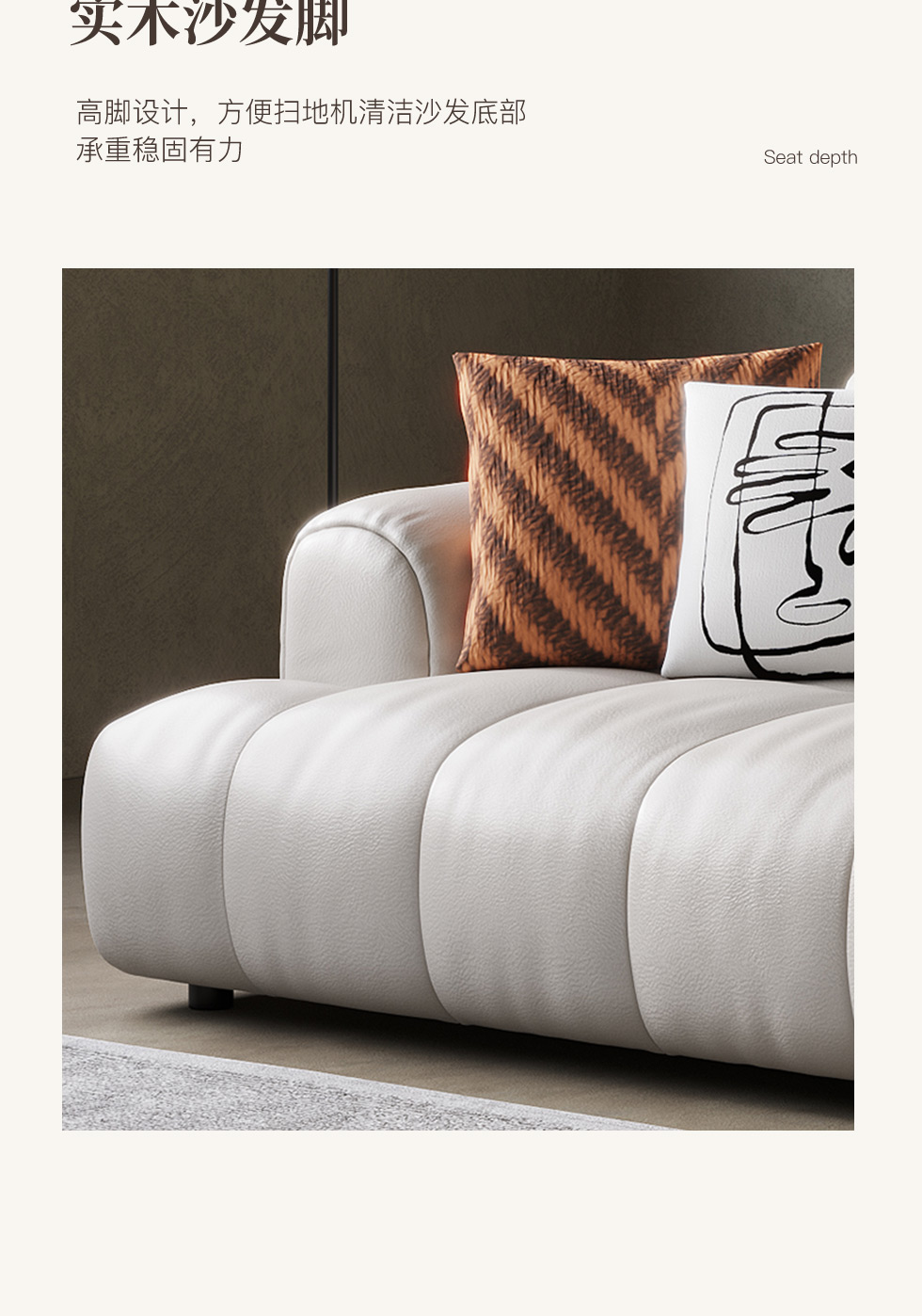 云端 奶油风 超纤皮+高回弹海绵+俄罗斯落叶松 米白色 大三位 网红豆腐块2.4米沙发