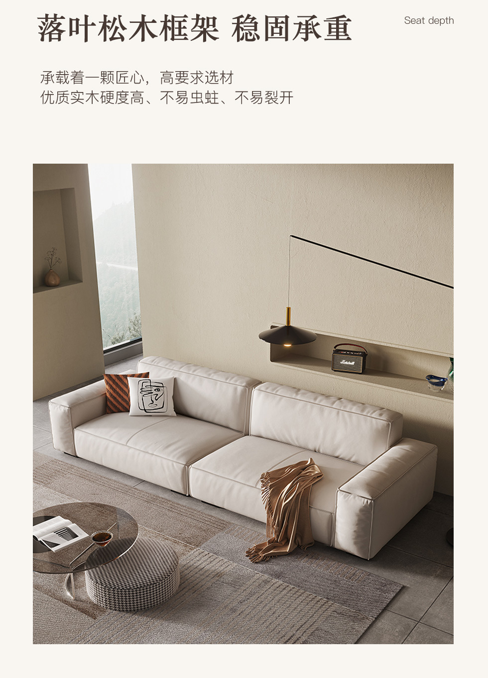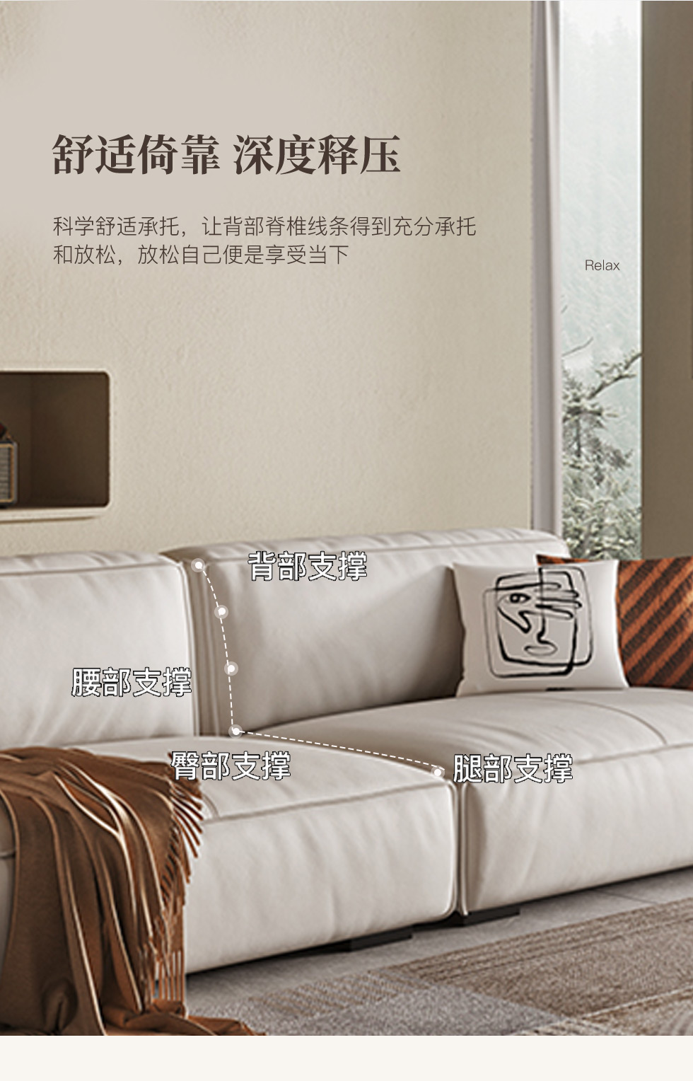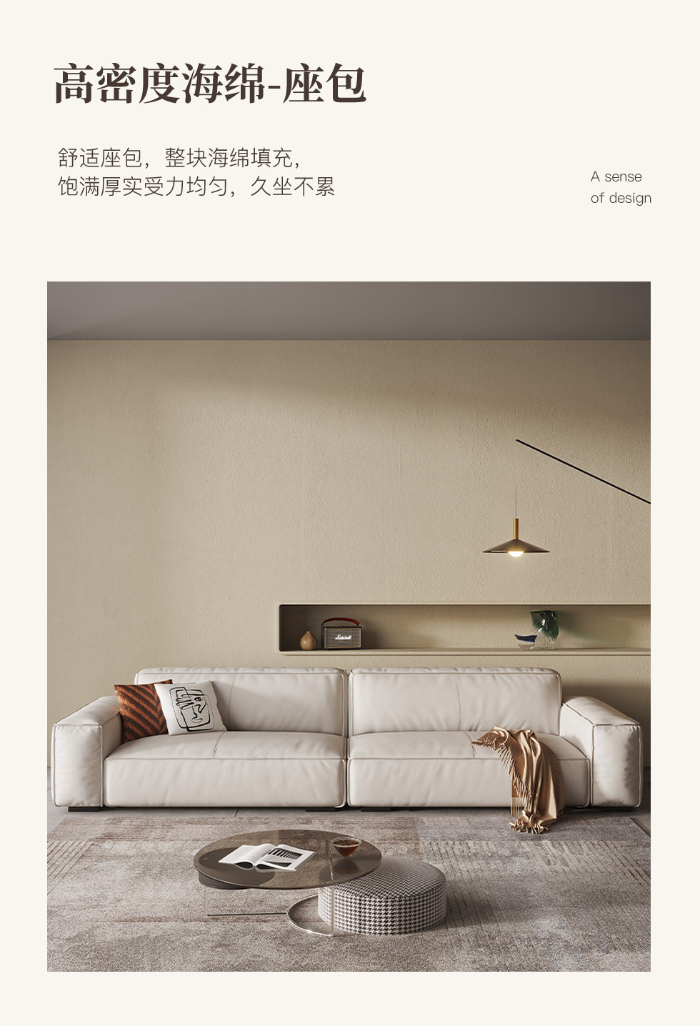 云端 奶油风 超纤皮+高回弹海绵+俄罗斯落叶松 米白色 四人位 豆腐块2.8米沙发