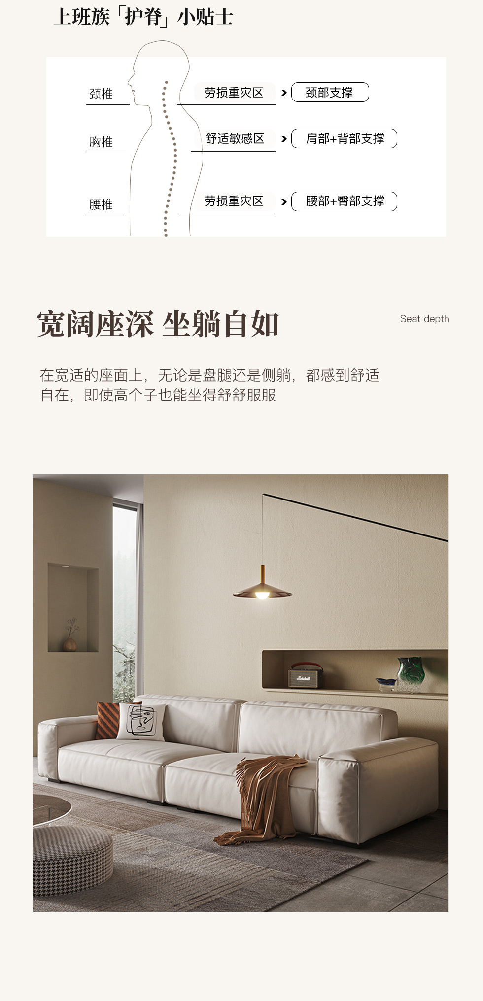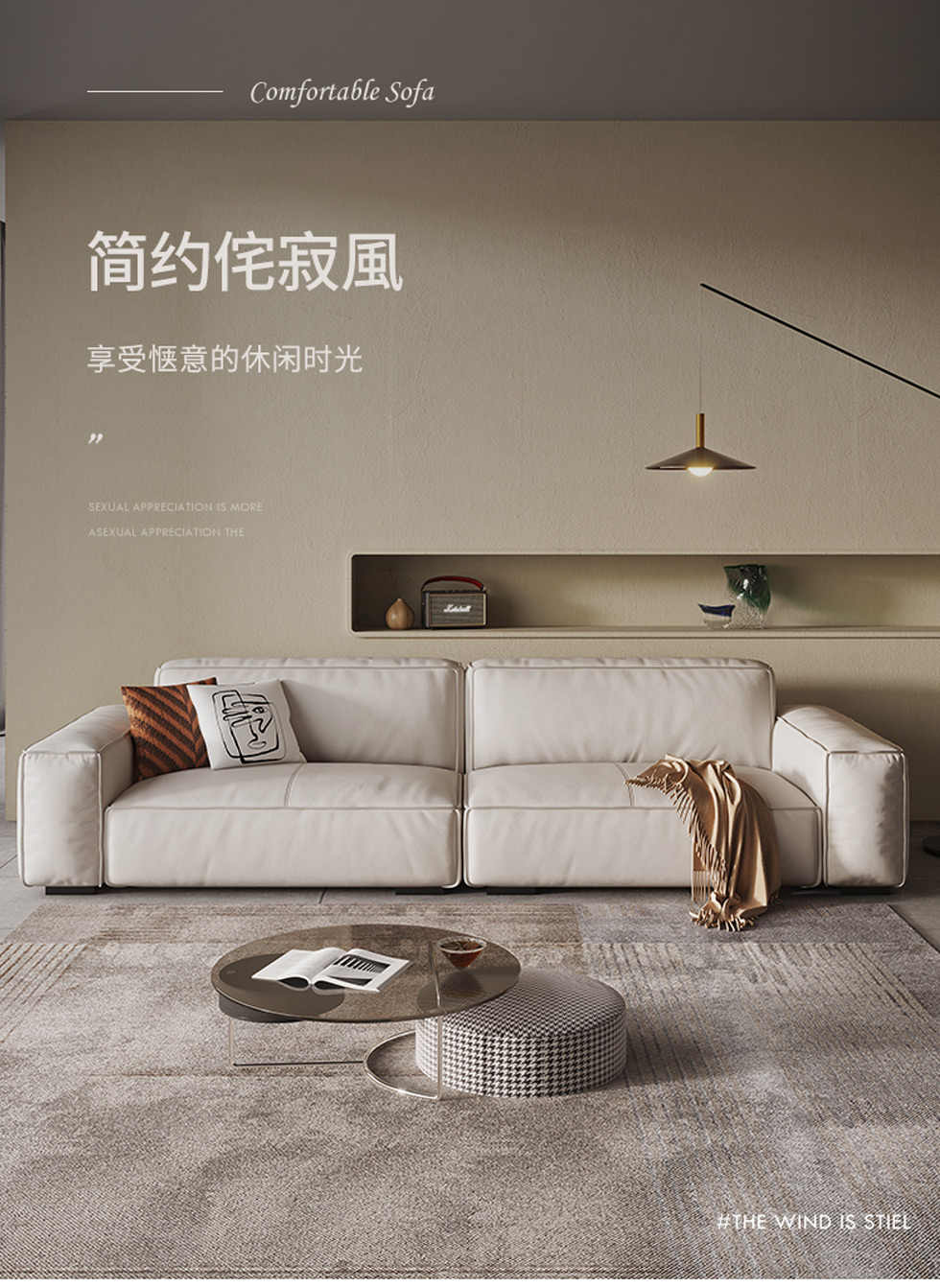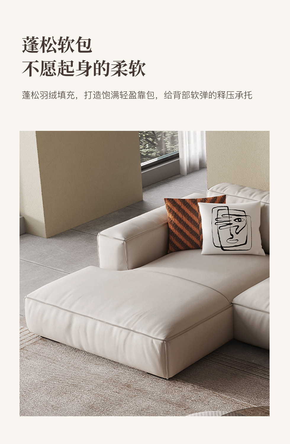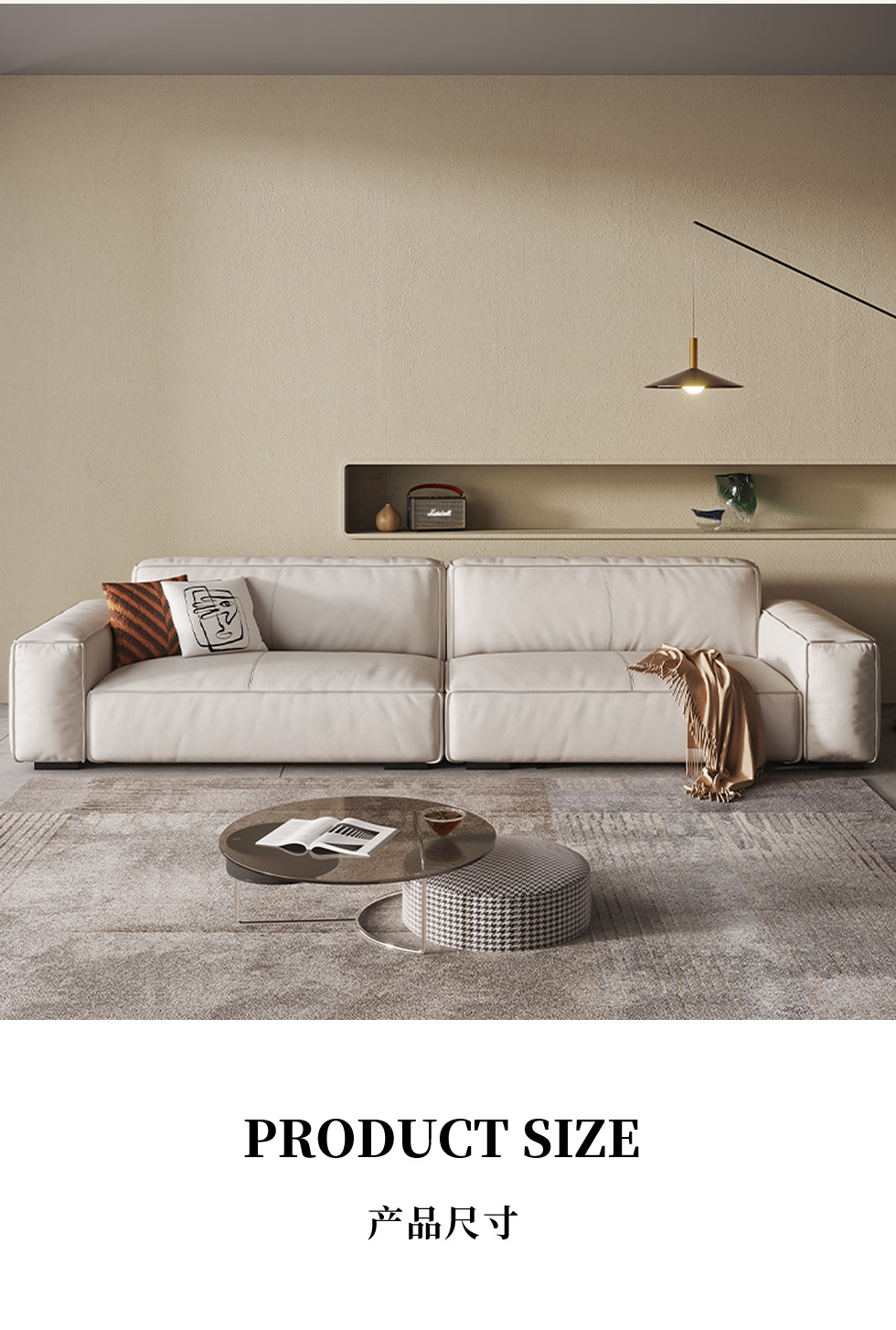 云端 奶油风 超纤皮+高回弹海绵+俄罗斯落叶松 米白色 四人位 豆腐块2.8米沙发
