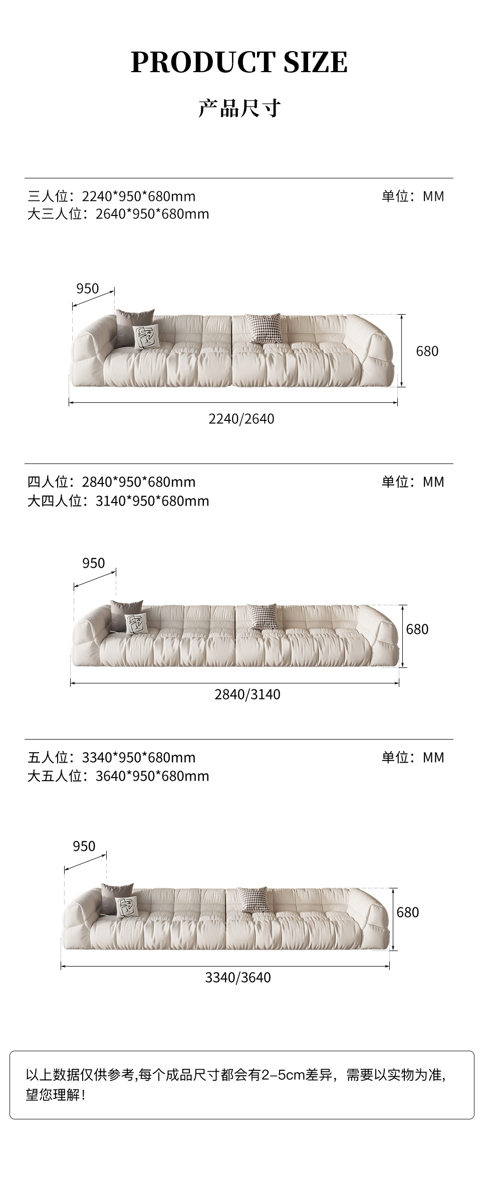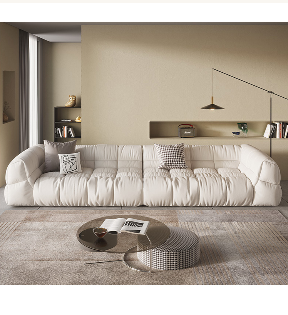 云端 奶油风 超纤皮+高回弹海绵+俄罗斯落叶松 米白色 大三位 网红豆腐块2.4米沙发