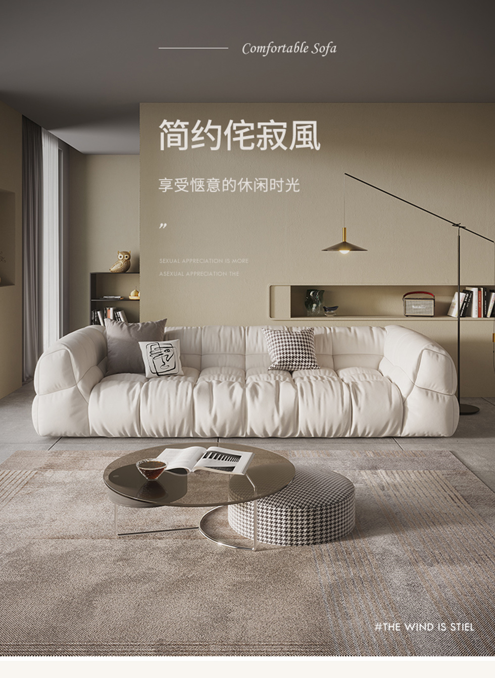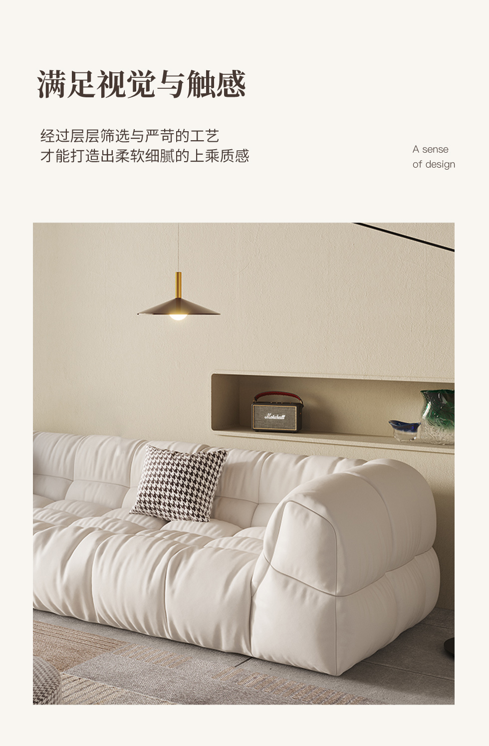 云端 奶油风 超纤皮+高回弹海绵+俄罗斯落叶松 米白色 大三位 网红豆腐块2.4米沙发