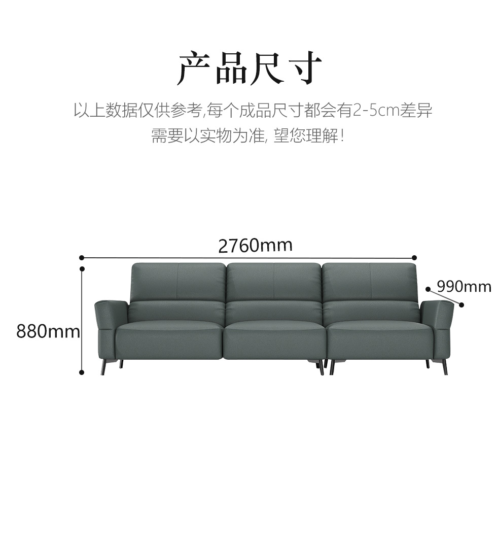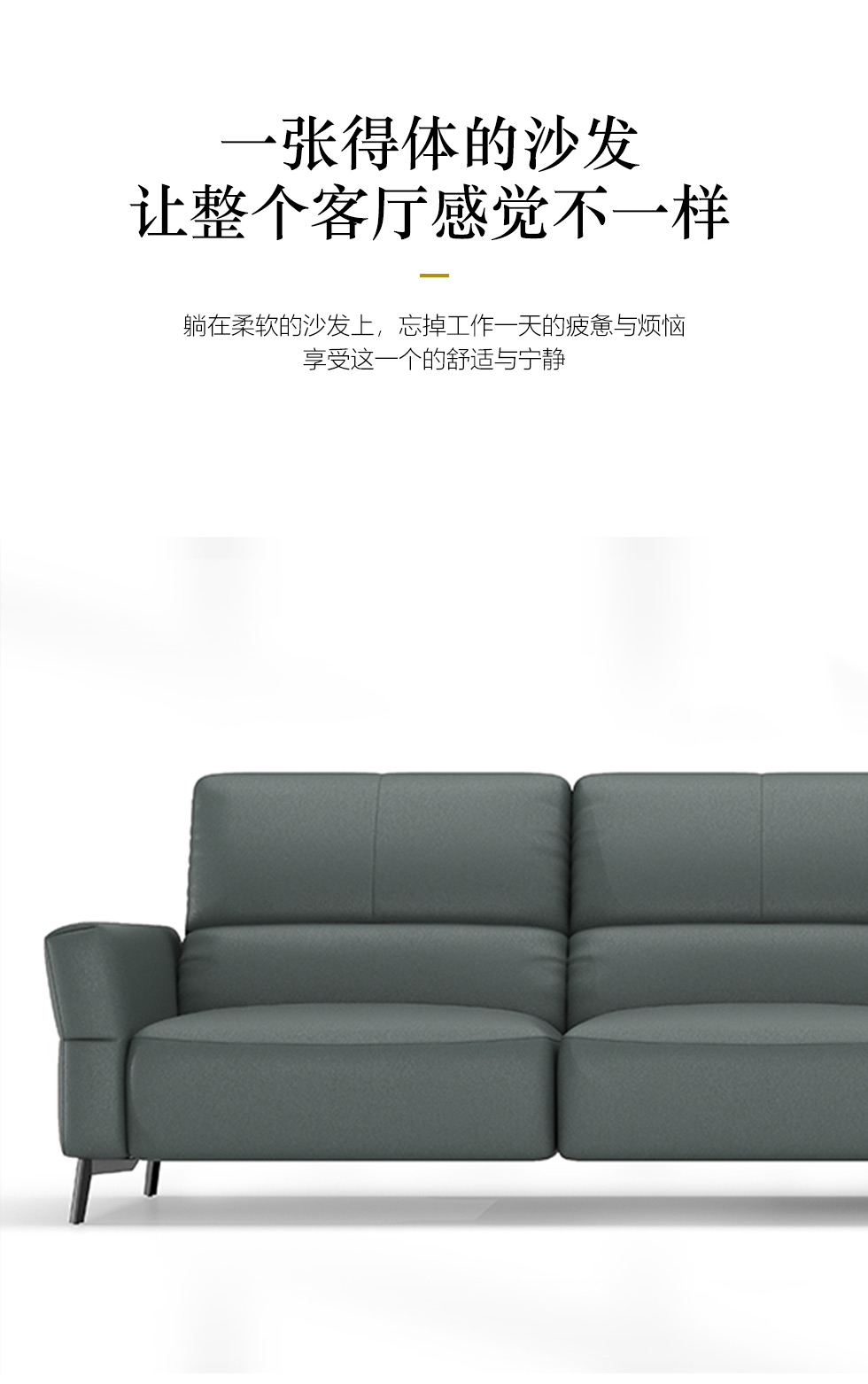 左右家居 极简 接触面头层牛皮+仿真皮+全实木框架+碳素钢五金脚 4A+4B(四人位)2.76米沙发 |