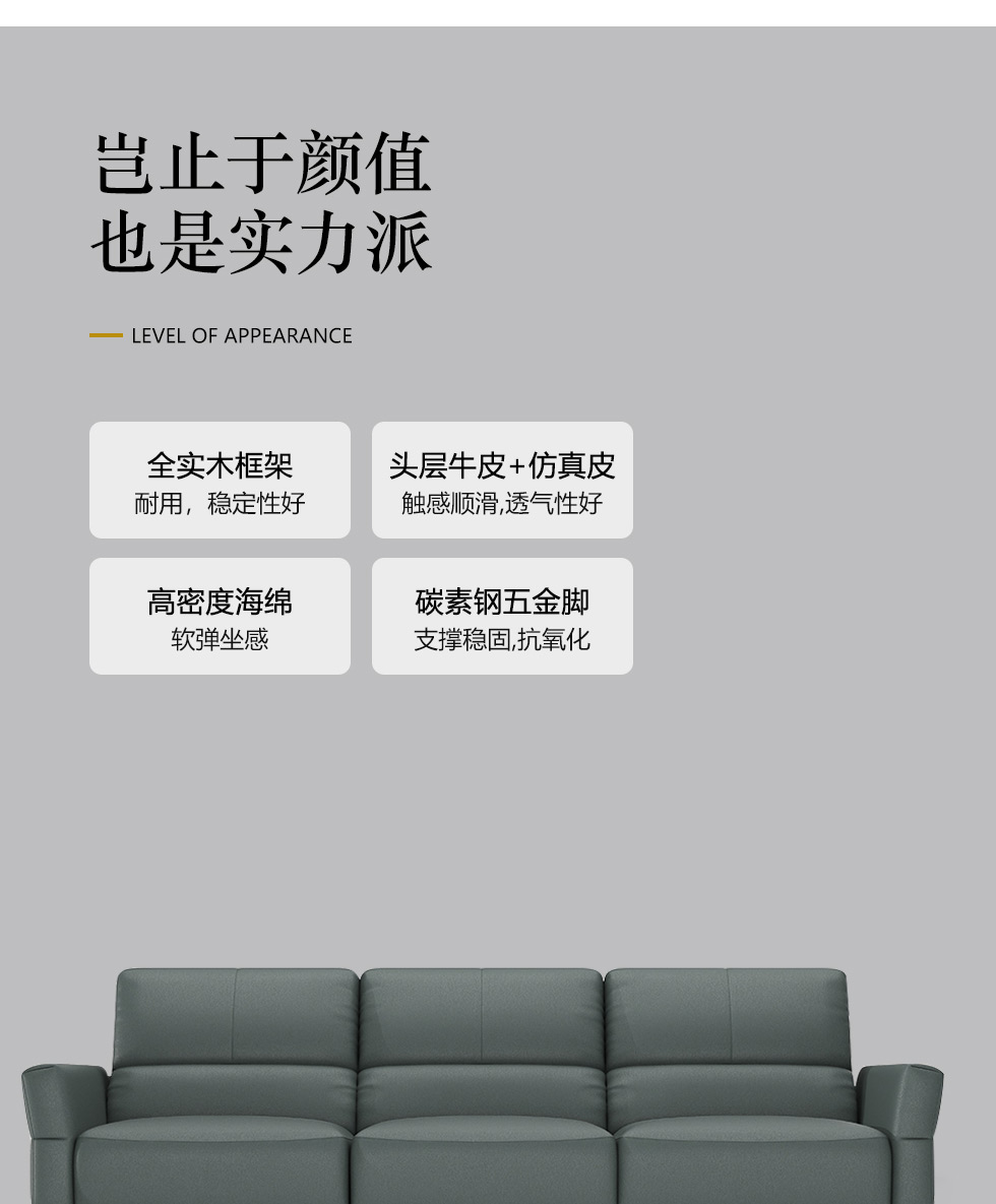 左右家居 现代简约 接触面头层牛皮+仿真皮+全实木框架+碳素钢五金脚 4A电动+4B(四人位)功能2.63米沙发1件商品搭配总价: