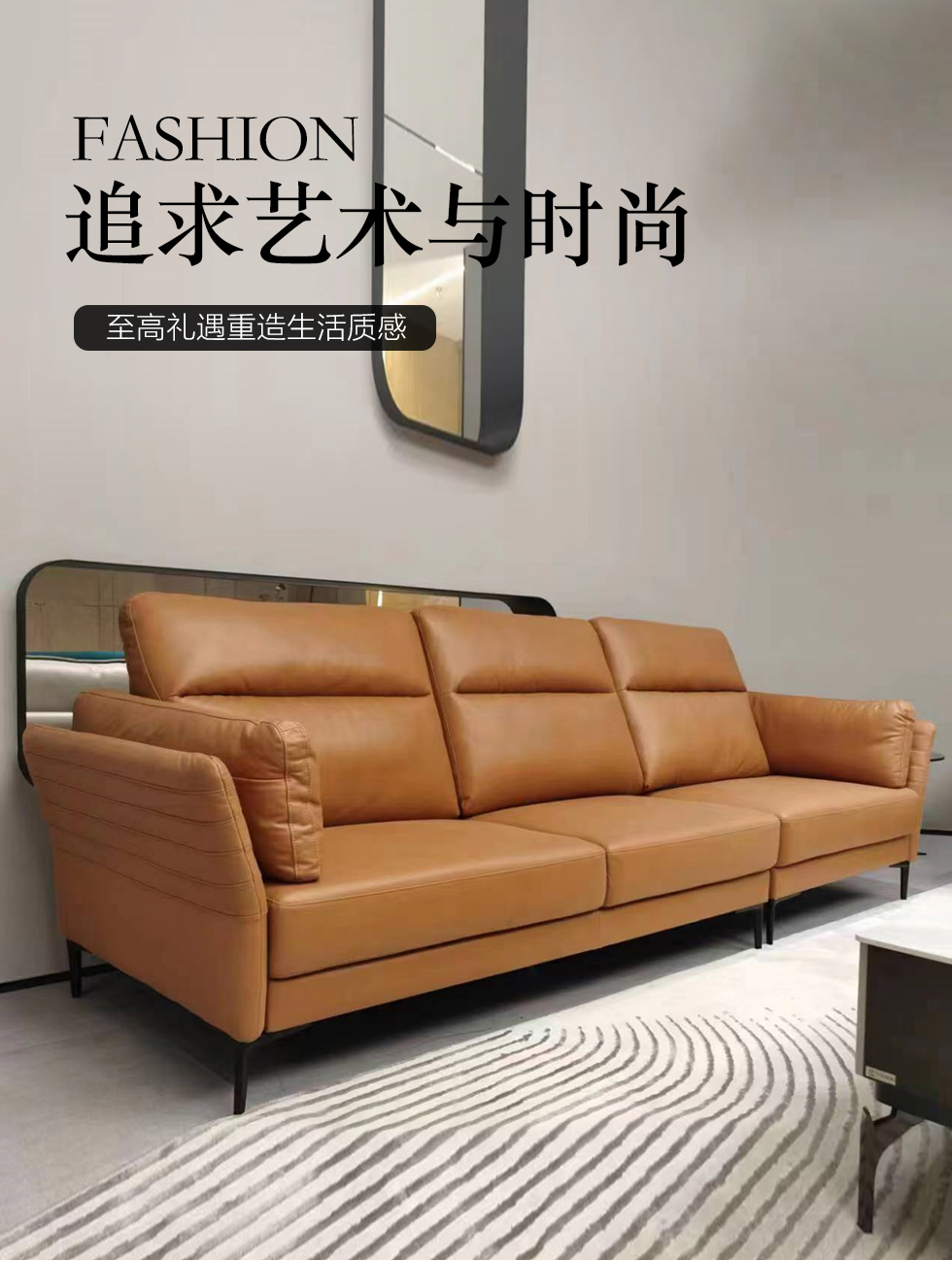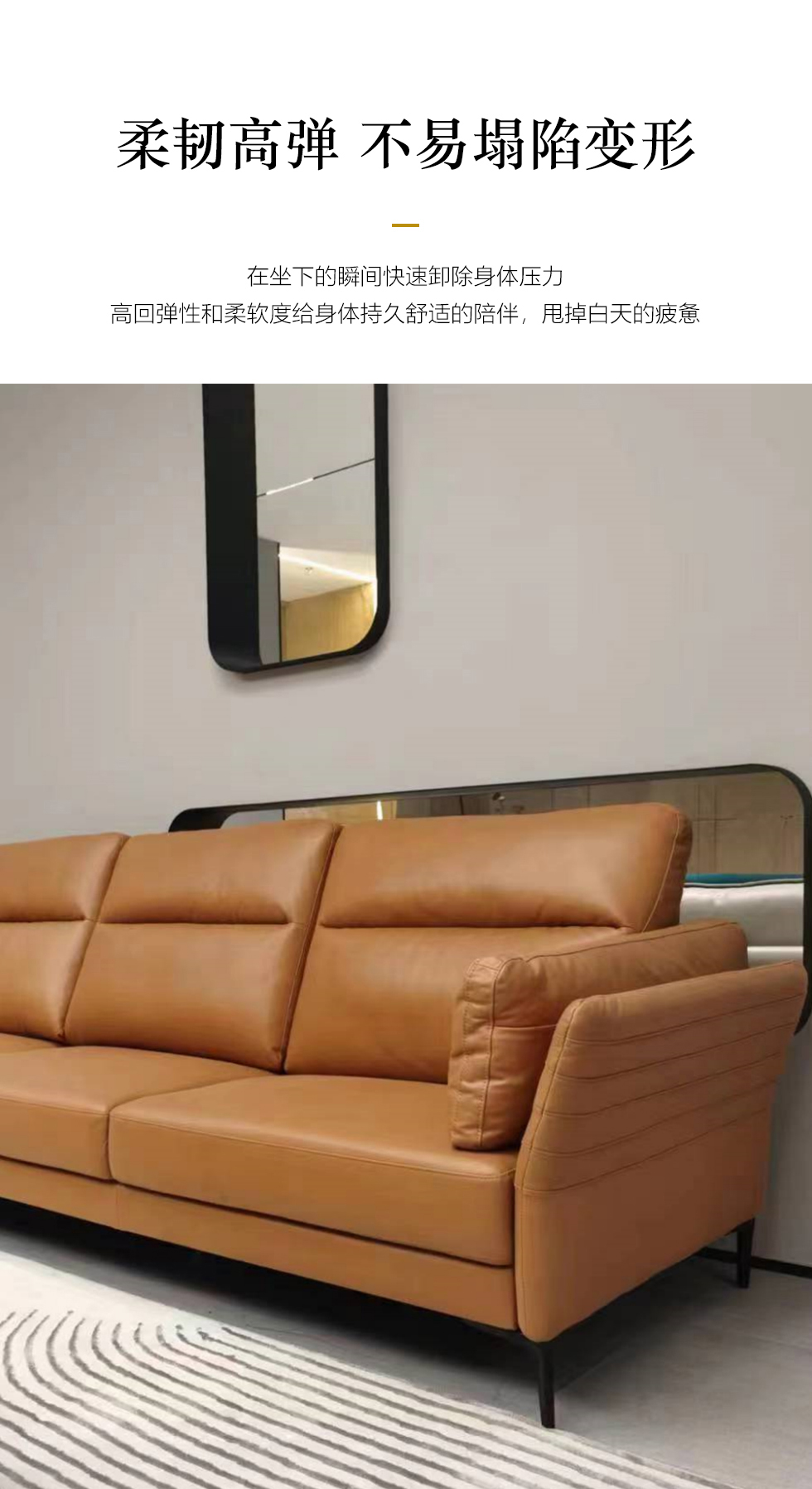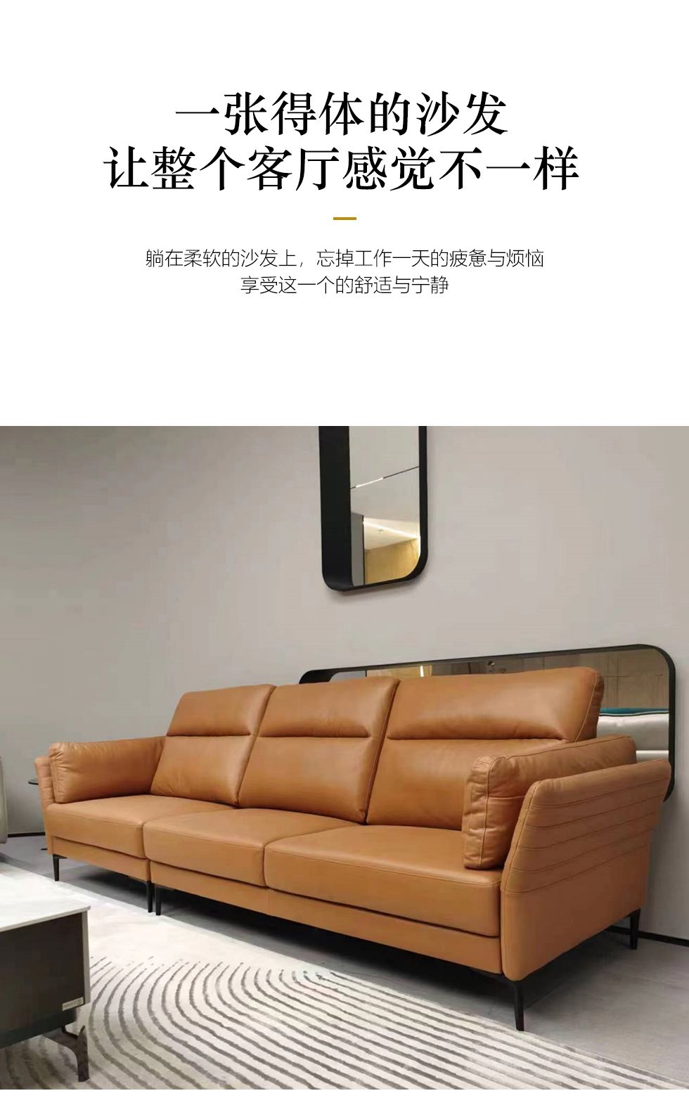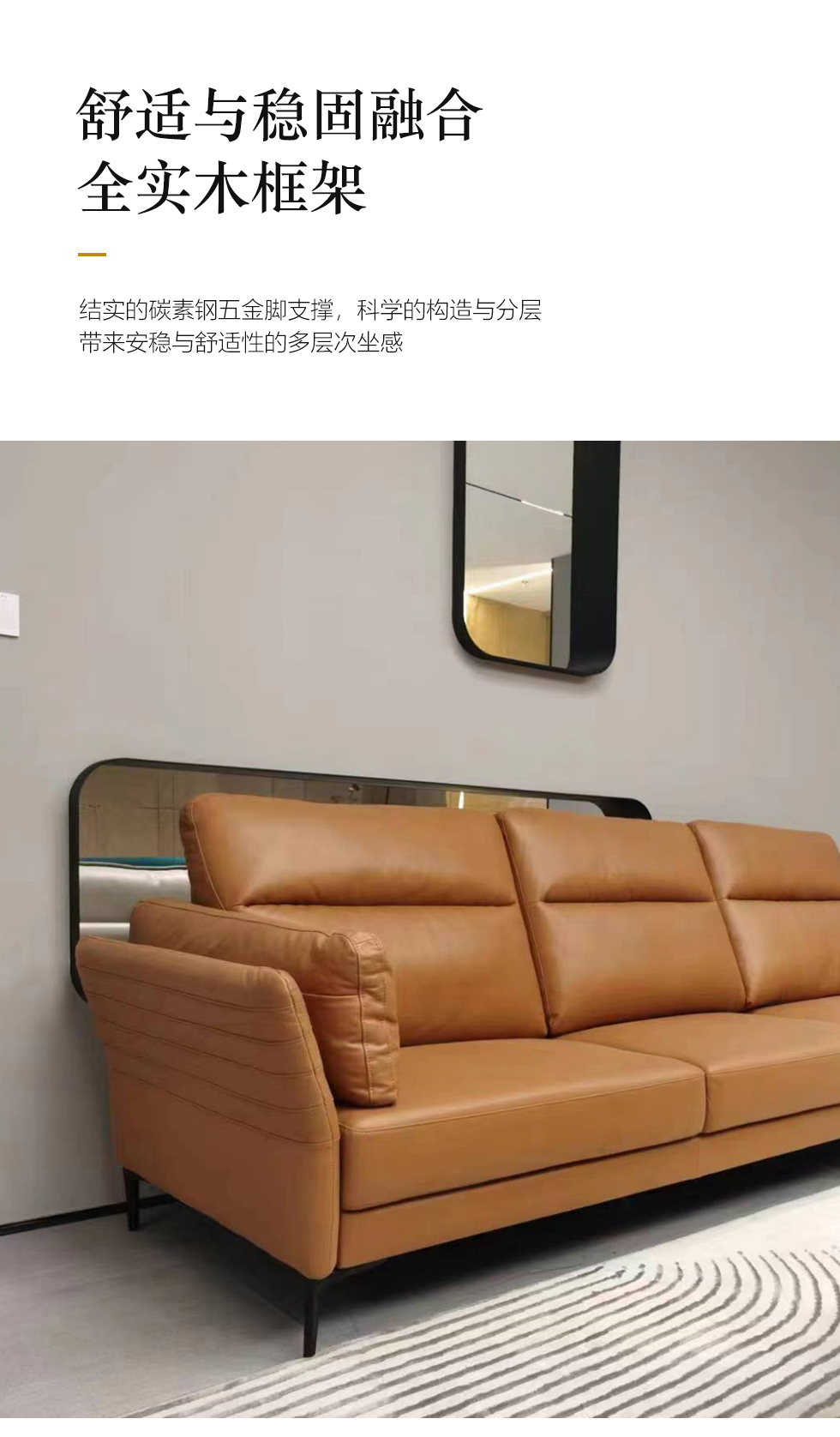 左右家居 现代简约 接触面头层牛皮 进口落叶松实木框架+蛇形弹簧系统+水性胶 高密度海绵 3.3米沙发¥10800