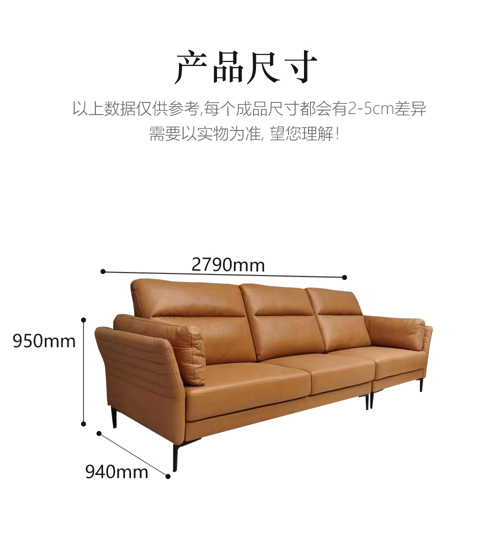 左右家居 现代简约 接触面头层牛皮 进口落叶松实木框架+蛇形弹簧系统+水性胶 高密度海绵 2.82米沙发¥13564