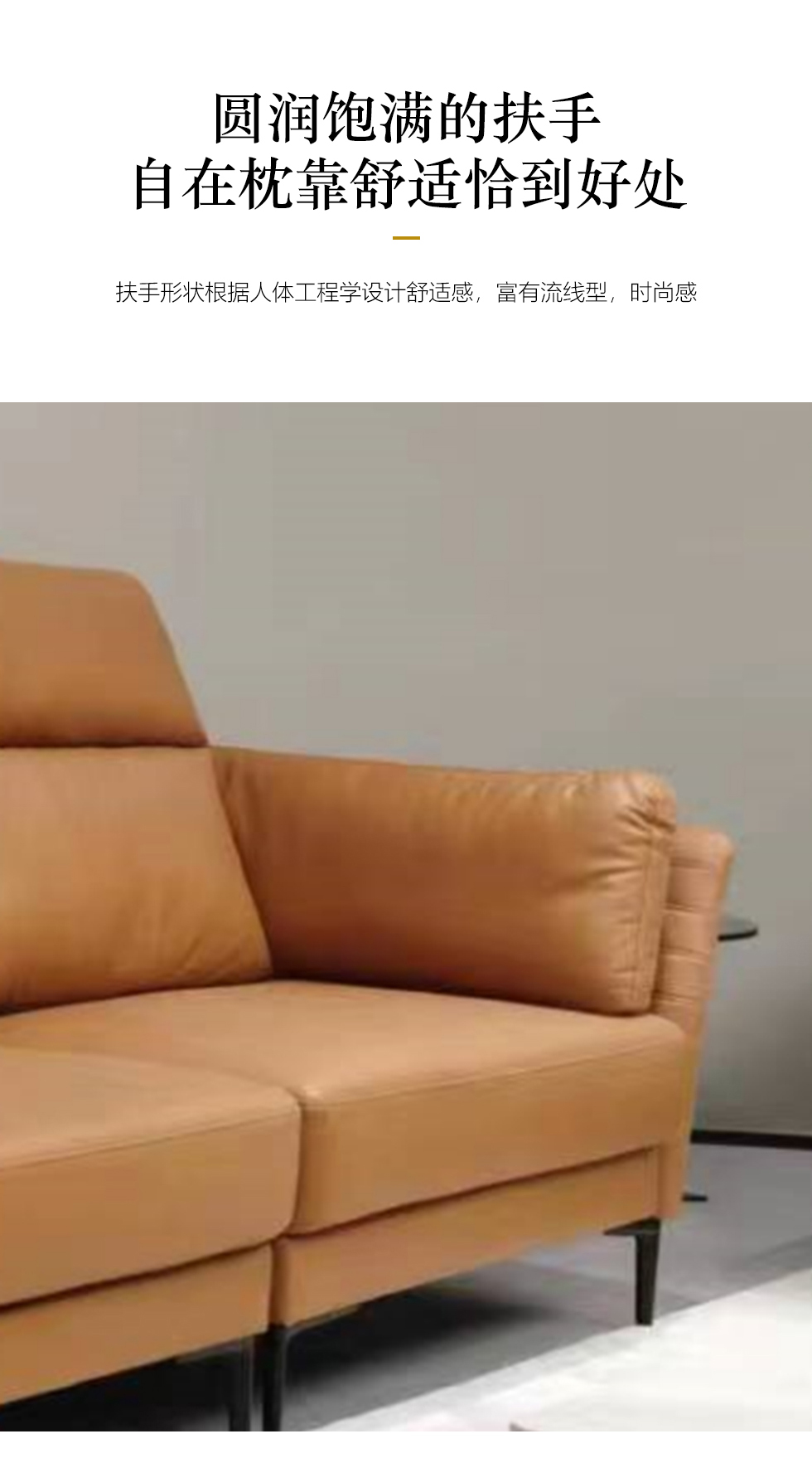左右家居 极简 接触面头层牛皮+仿真皮+全实木框架+碳素钢五金脚 4A+4B(四人位)2.76米沙发¥5981