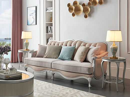 艾美侈 美式 俄罗斯桦木+棉麻布 珍珠银 三人位2.27米沙发¥14879
