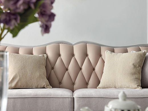 艾美侈 美式 俄罗斯桦木+接触面超纤皮+后背棉麻 香槟银 三人位2.2米沙发¥9301