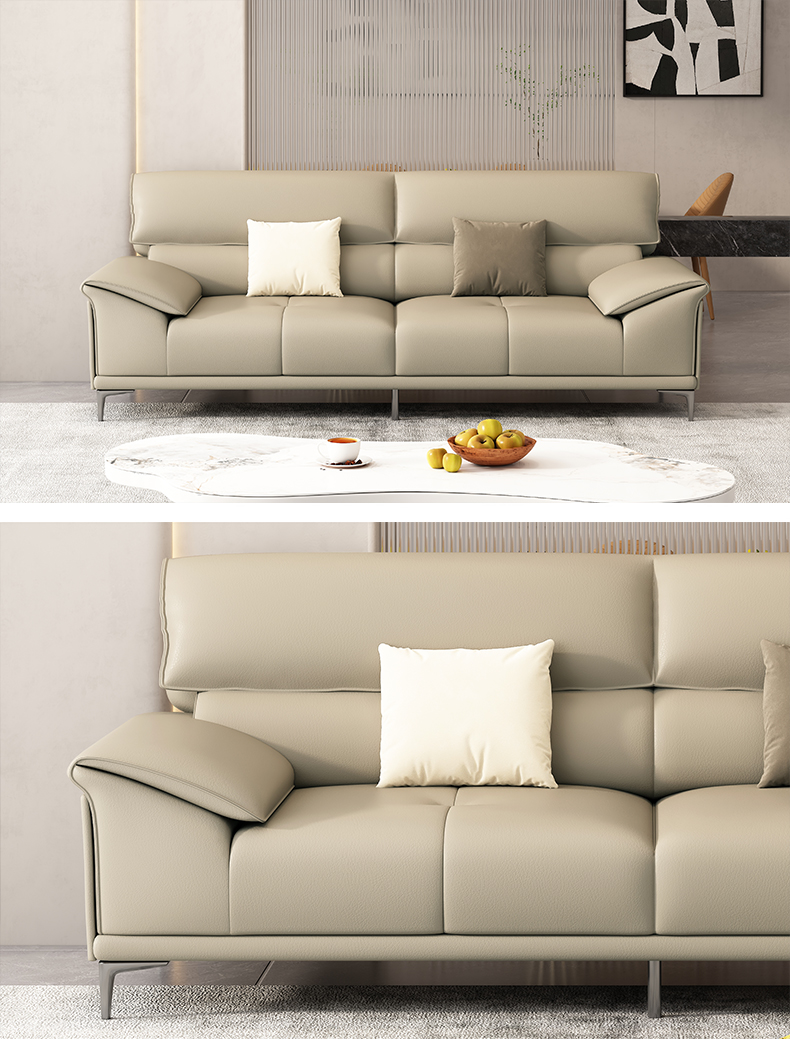 非凡工艺 现代简约 生态真皮+全实木内架+多层实木板+高回弹海绵+15分碳素钢五金脚 暖灰 皮艺沙发 2.2米三位+脚踏坐凳