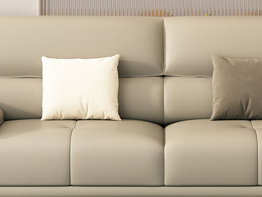 非凡工艺 现代简约 生态真皮+全实木内架+多层实木板+高回弹海绵+15分碳素钢五金脚 米白 皮艺沙发(2.2米三位)+脚踏坐凳