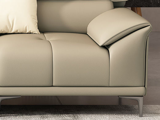 非凡工艺 现代简约 生态真皮+全实木内架+多层实木板+高回弹海绵+15分碳素钢五金脚 米白 直排皮艺沙发3.2米(四位)