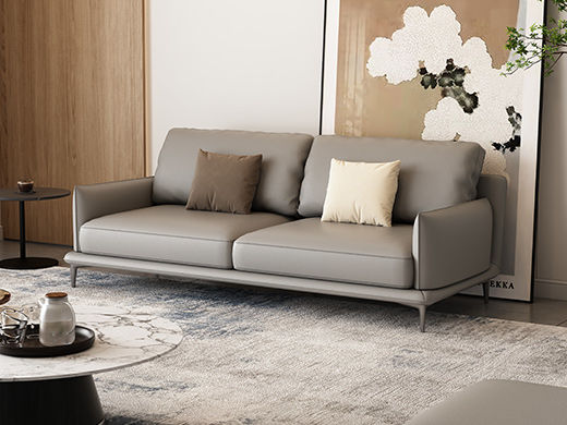 非凡工艺 现代简约 生态真皮+全实木内架+多层实木板+高回弹海绵+15分碳素钢五金脚 暖灰 皮艺沙发 2.2米三位+脚踏坐凳