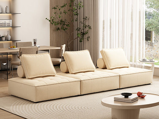 非凡工艺 现代简约 奶油风 科技绒+高密度海绵+羽绒+松木+桉木+弹簧+橡筋+网布+实木脚 3.2米 五人位分体 绒艺沙发¥8616