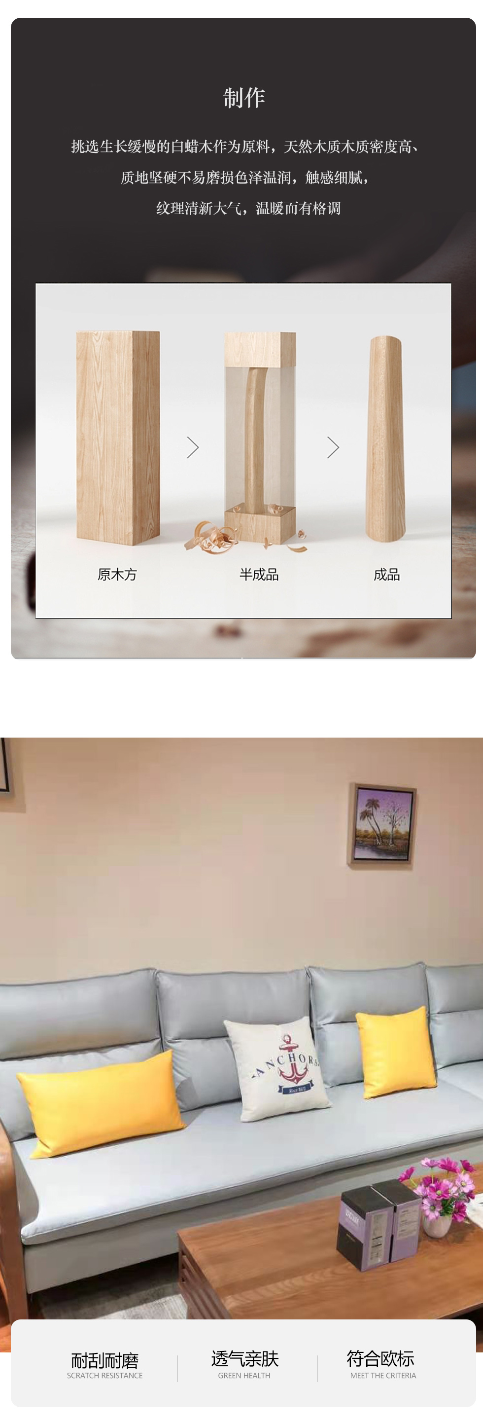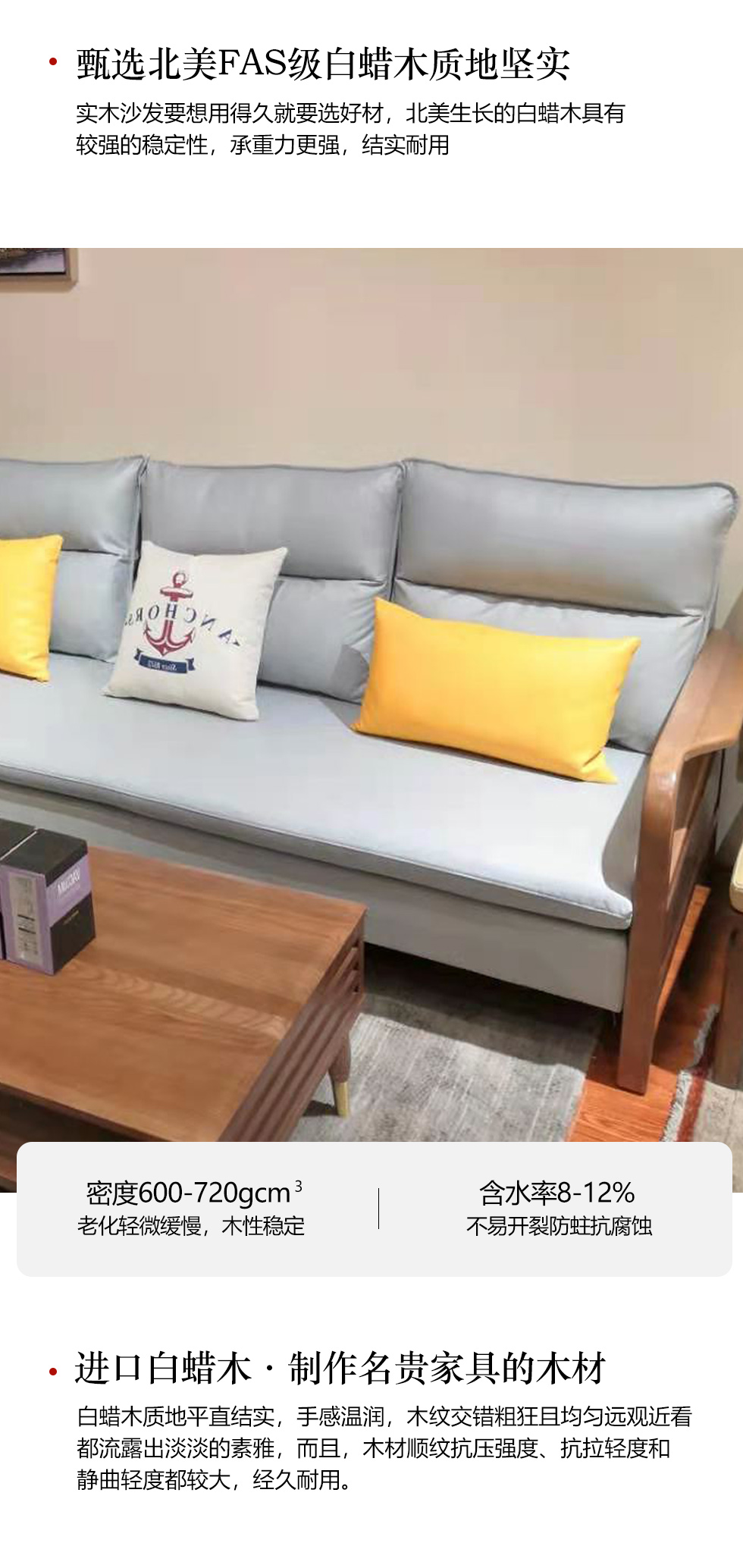 乐芙兰 北欧 进口白蜡木+全实木框架+多层实木板+高回弹海绵+科技布 图片色 1+2+3组合沙发