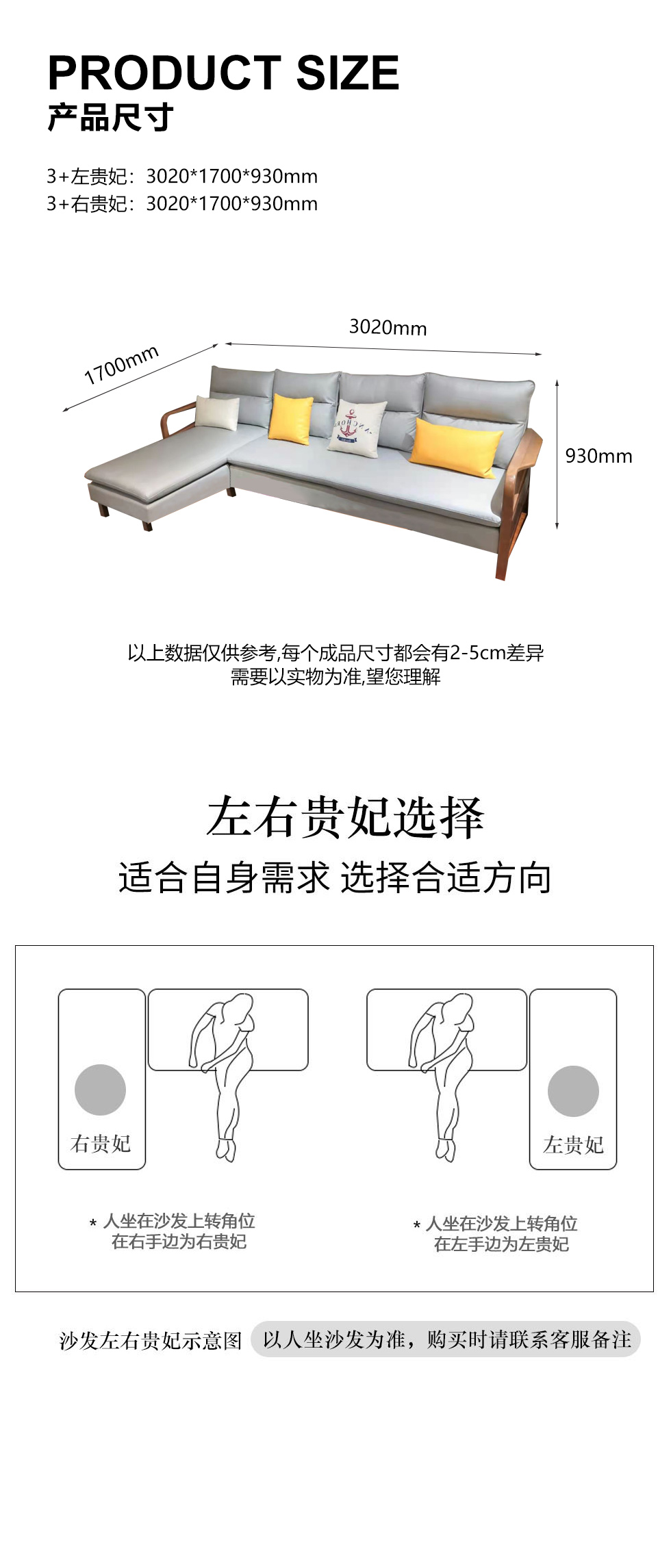 乐芙兰 北欧 进口白蜡木+全实木框架+多层实木板+高回弹海绵+科技布 图片色 3+贵妃右转角3.02米沙发