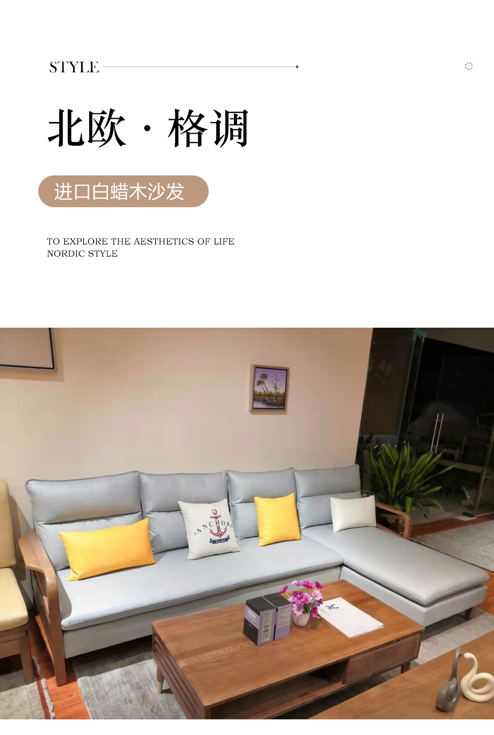 乐芙兰 北欧 进口白蜡木+全实木框架+多层实木板+高回弹海绵+科技布 图片色 3+贵妃右转角2.85米沙发
