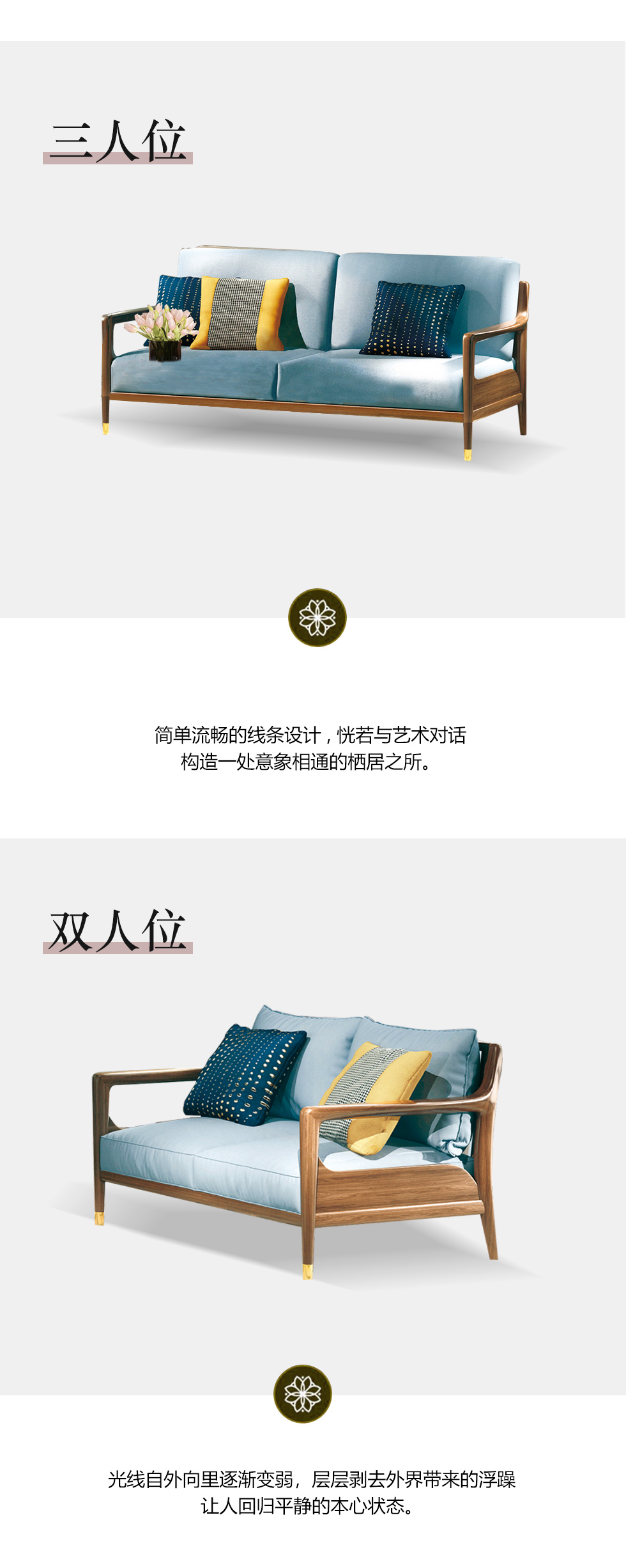 优木集 现代简约 接触面棉麻面料+高回弹海绵+白蜡木实木框架+橡胶木 2.182米沙发¥3984
