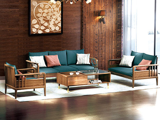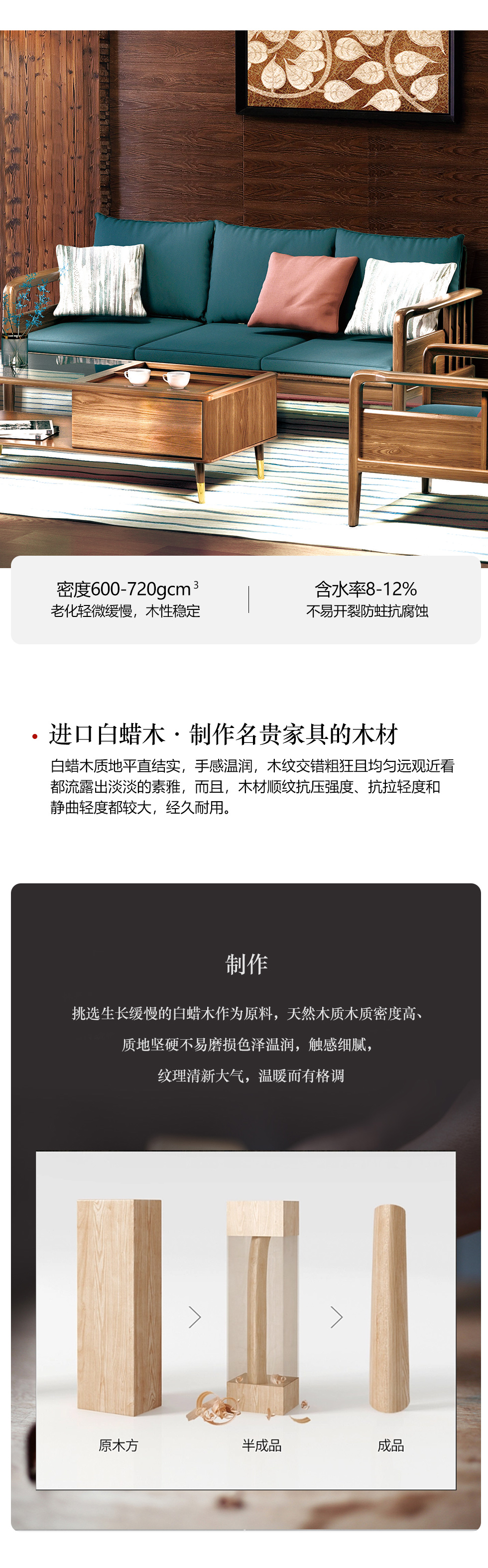优木集 现代简约 接触面棉麻面料+高回弹海绵+白蜡木实木框架+橡胶木 2.182米沙发¥3984