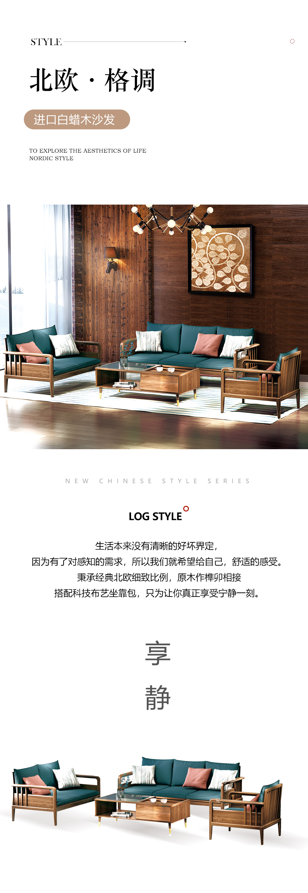 乐芙兰 北欧 进口白蜡木+全实木框架+多层实木板+高回弹海绵+科技布 图片色 1+2+3组合沙发
