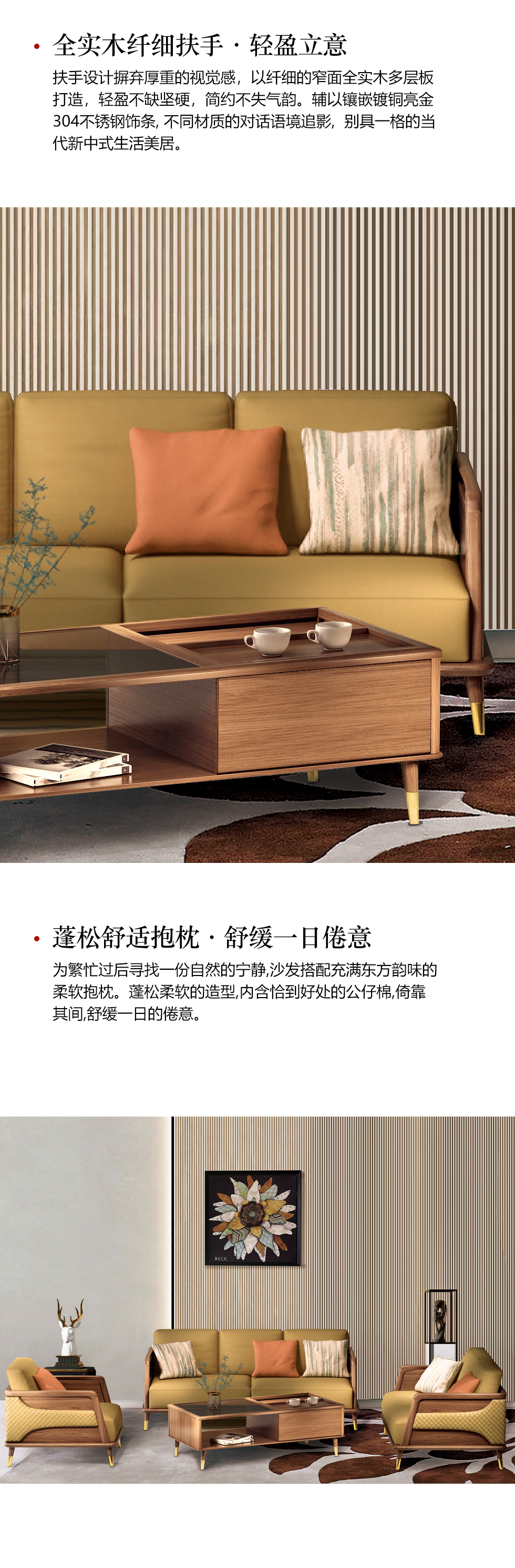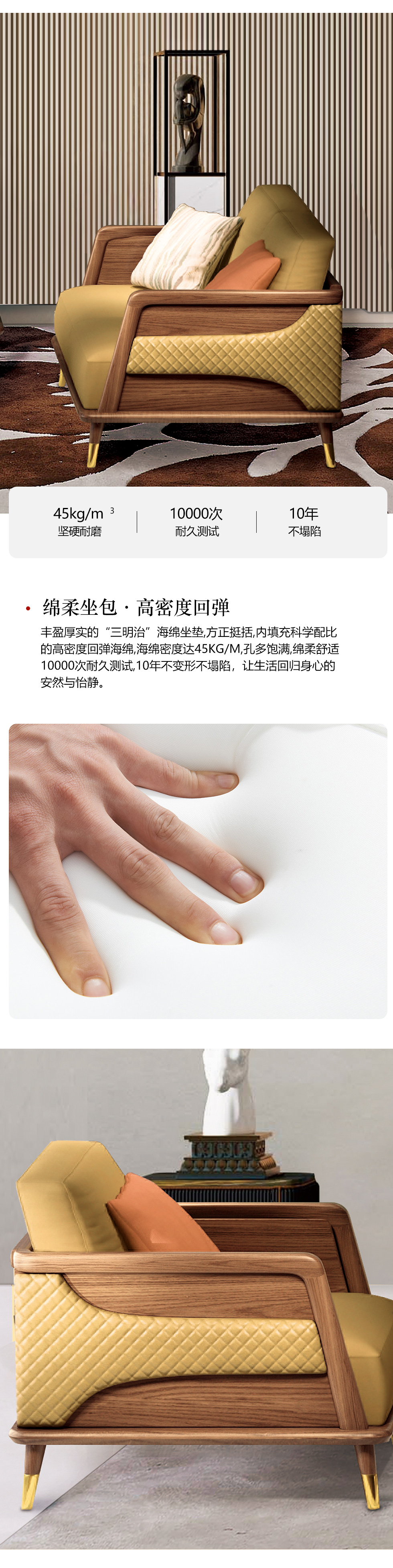 简森曼 北欧风 科技布+扶手背架座板框架为橡胶木坐板下两条托方为松木 原木色 三人位2.01米沙发 【实木拼接工艺】¥8922