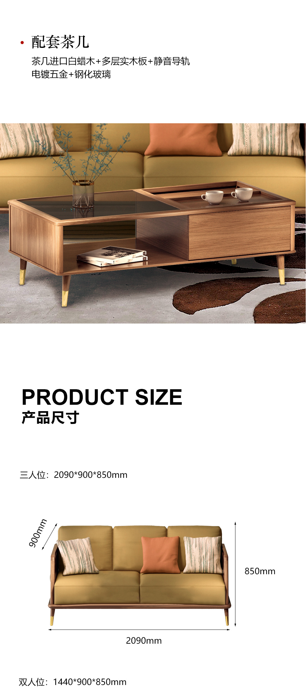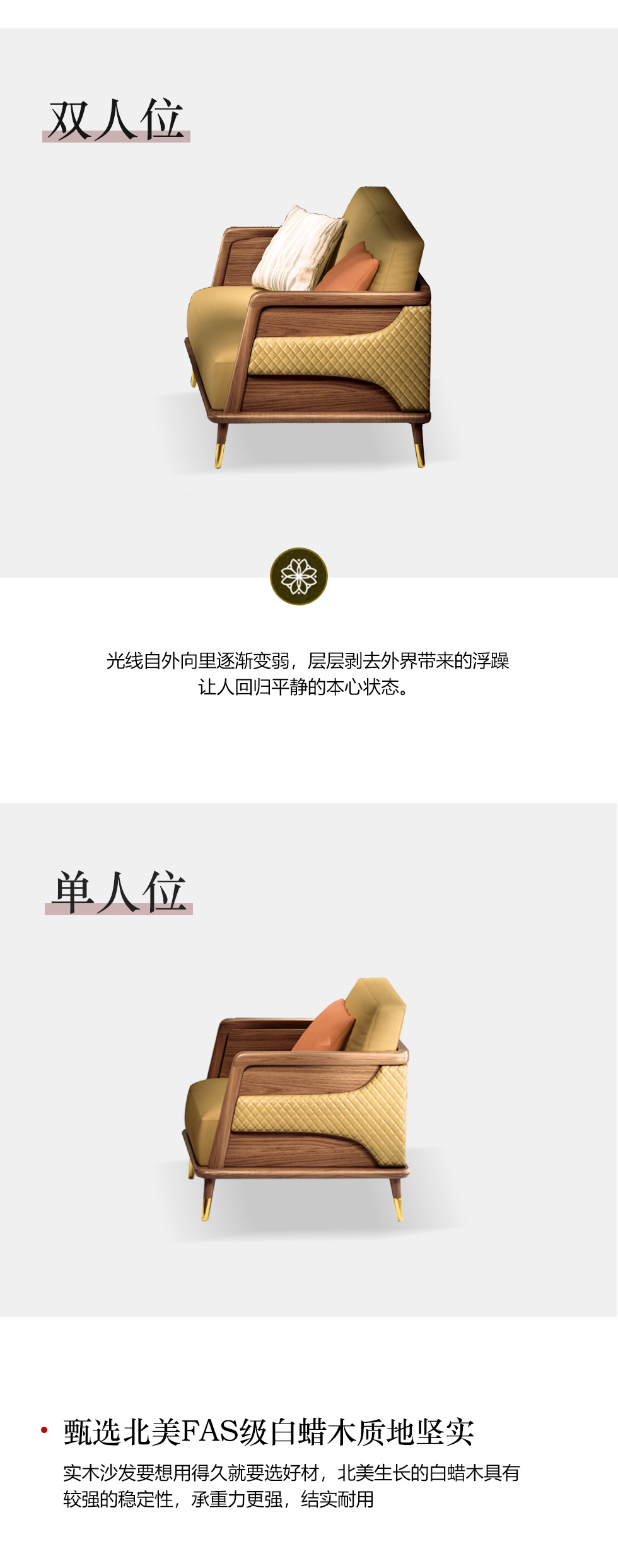 乐芙兰 北欧 进口白蜡木+全实木框架+蛇形弹簧+高回弹海绵+科技布+电镀五金 图片色 1+2+3组合沙发