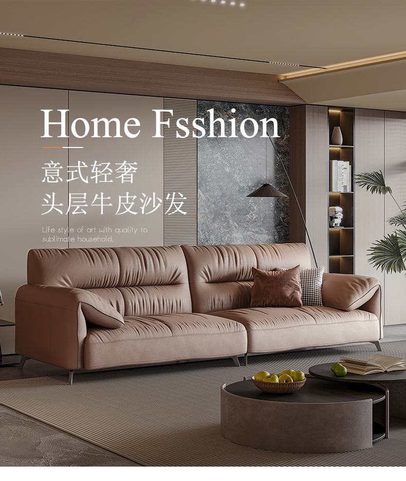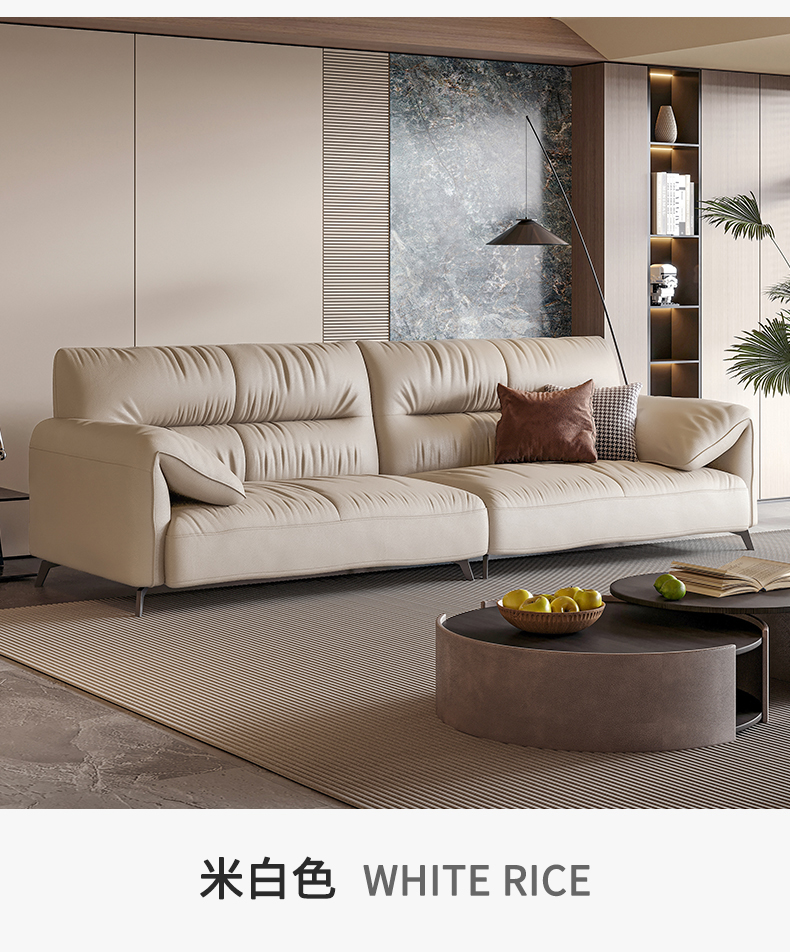 B系优选 现代简约 接触面中厚头层牛皮面料+进口俄罗斯松木框架+高回弹海绵+坐前真皮+仿真皮 四人位 3米沙发¥8155