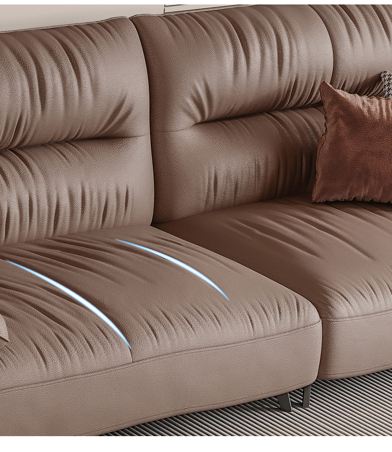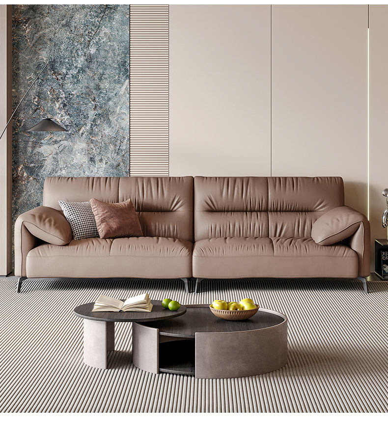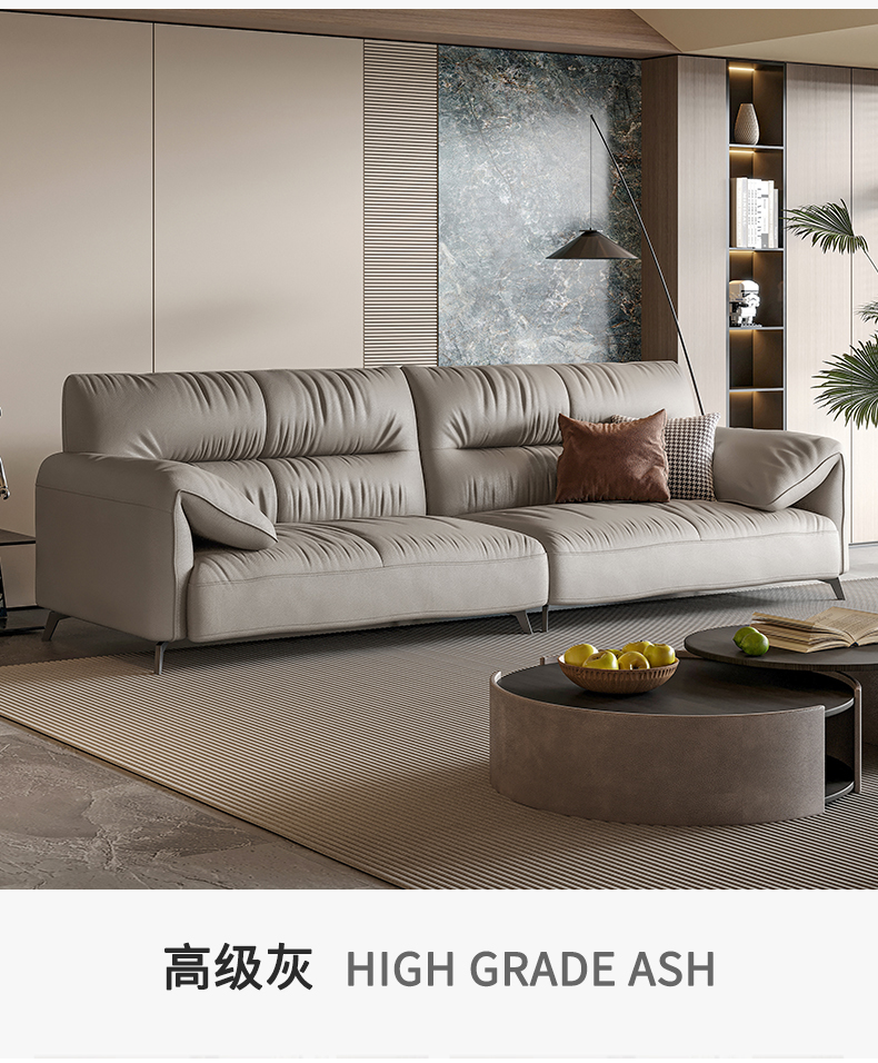 B系优选 现代简约 接触面头层黄牛皮+仿皮+E1级夹板+松木框架+无粉高密度海绵+靠包填充公仔棉 四人位 真皮2.8米沙发