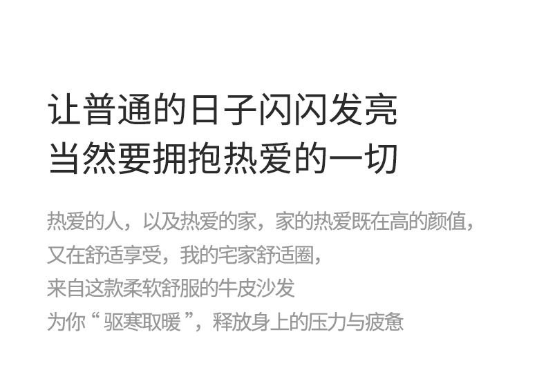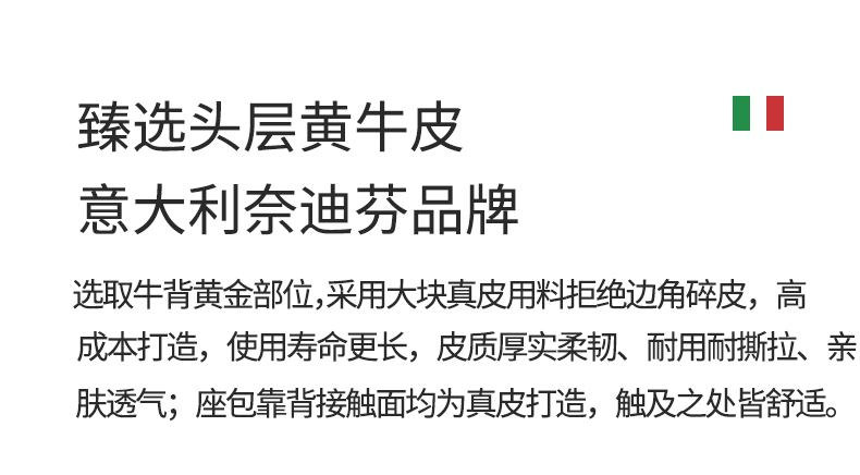 B系优选 现代简约 接触面头层黄牛皮+仿皮 E1级夹板+松木框架 无粉海绵 靠包赛羽绒+公仔棉填充 样色 直排3.2米四人位 皮艺沙发
