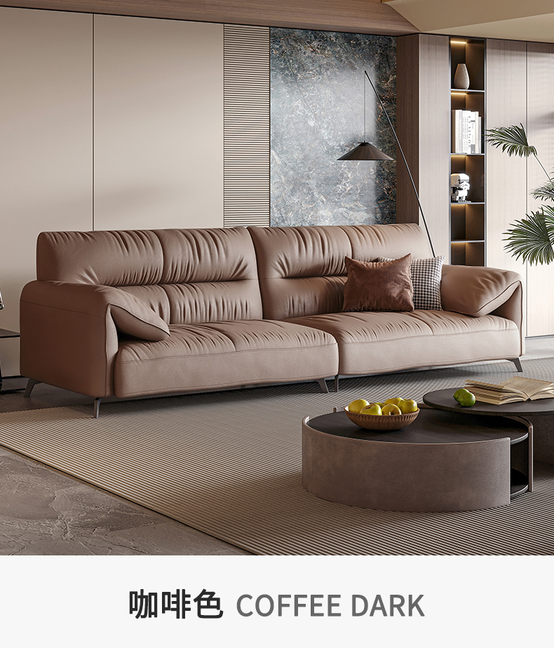 B系优选 现代简约 接触面真皮 全实木刨方木架+蛇形弹簧+静音拉扣 深色卡其 2.8米直排 四人位 沙发¥8155