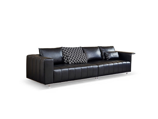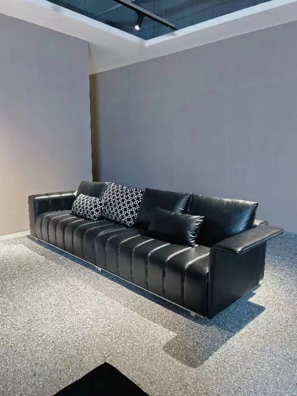 梵纳意简 极简 接触面头层牛皮+多层实木板+实木框架+高回弹海绵+不锈钢五金+羽绒 四人位 Q361网红 极简钢琴键3.3米沙发