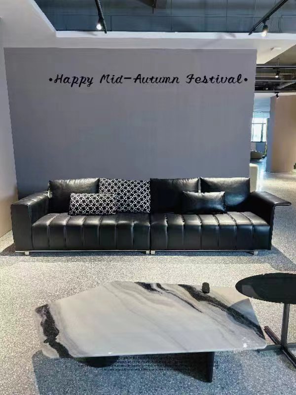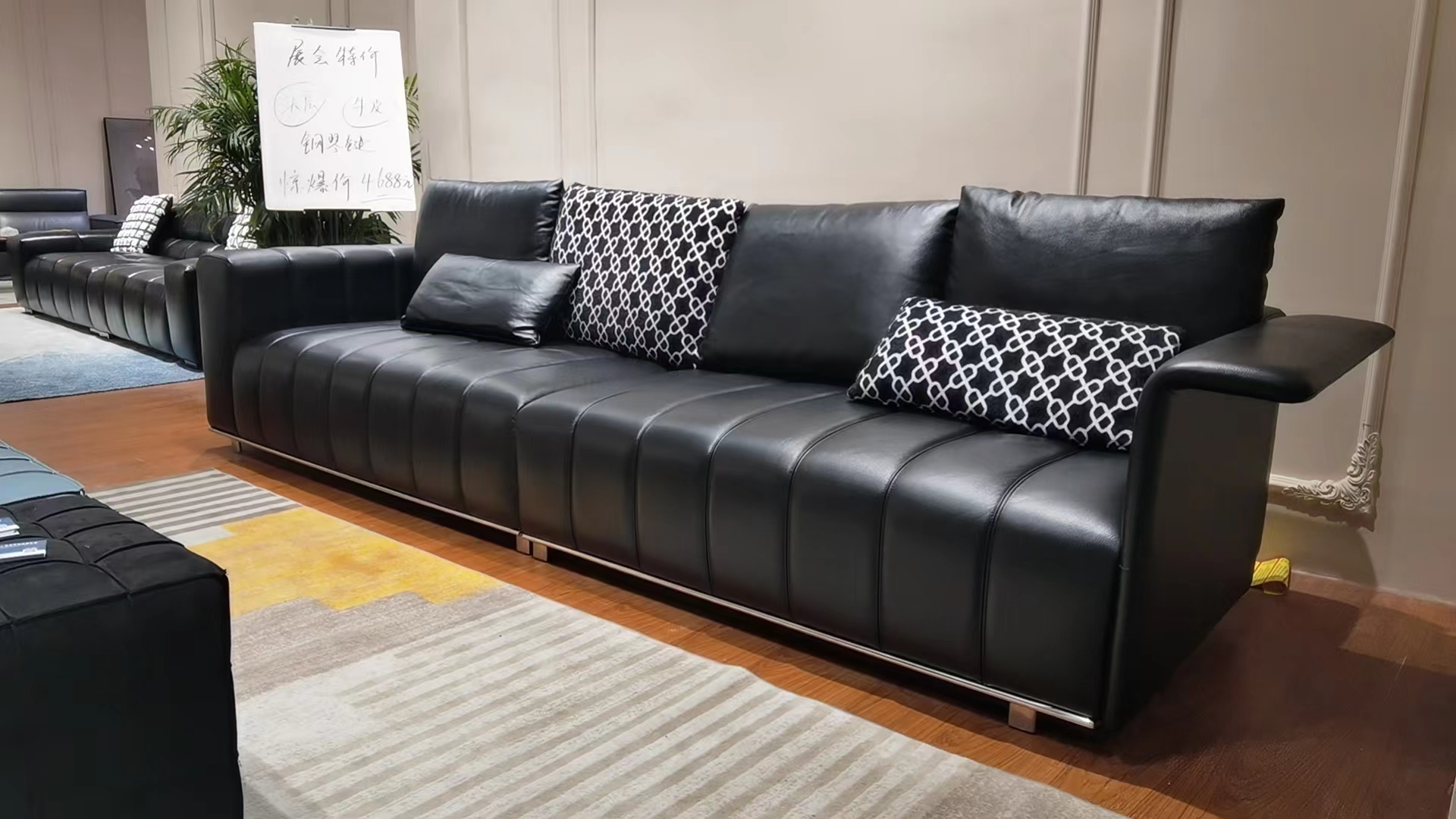 梵纳意简 极简 接触面头层牛皮+多层实木板+实木框架+高回弹海绵+不锈钢五金+羽绒 四人位 H361网红 极简钢琴键3.32米沙发