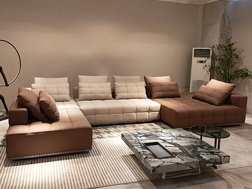 梵纳意简 极简 接触面头层牛皮+多层实木板+实木框架+高回弹海绵+碳素钢钢五金 异形沙发 网红 极简龙骨3.5米沙发