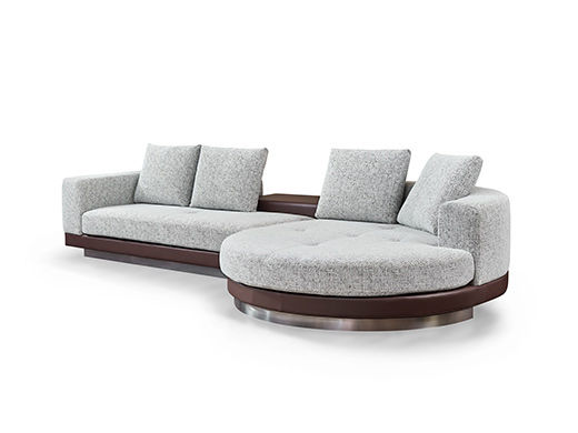 梵纳意简 极简 棉麻布+马鞍皮+多层实木板+实木框架+高回弹海绵+不锈钢五金+羽绒 左转角3.75米沙发 康纳利圆妃