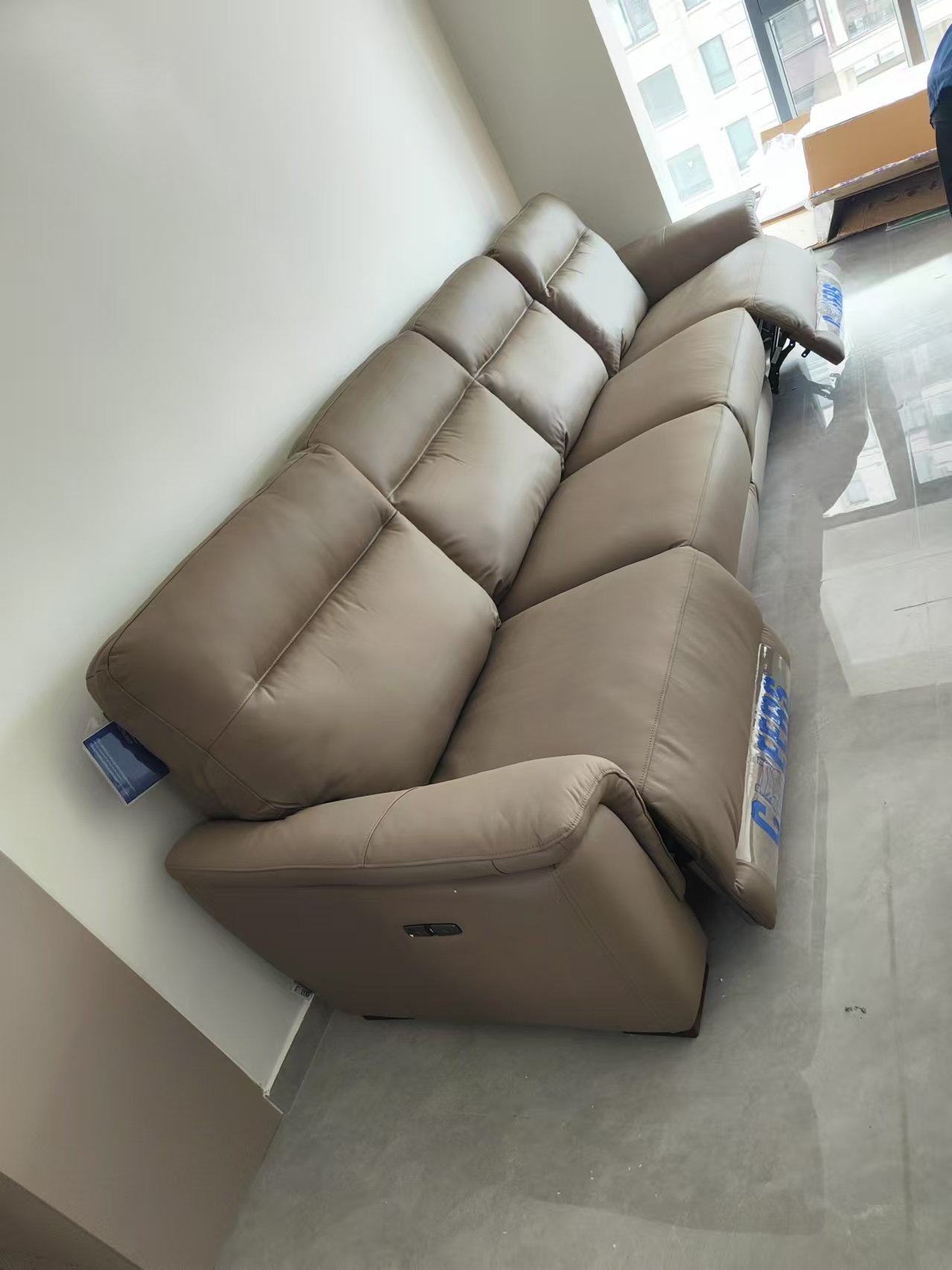 甄品家具 现代简约 接触面进口头层牛皮+进口 落叶松+高 回弹海绵+高承重碳 钢功能架+零靠墙锐迈电机+单电动功能 碳素钢脚 3米 三人位 单电动功能沙发