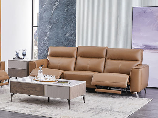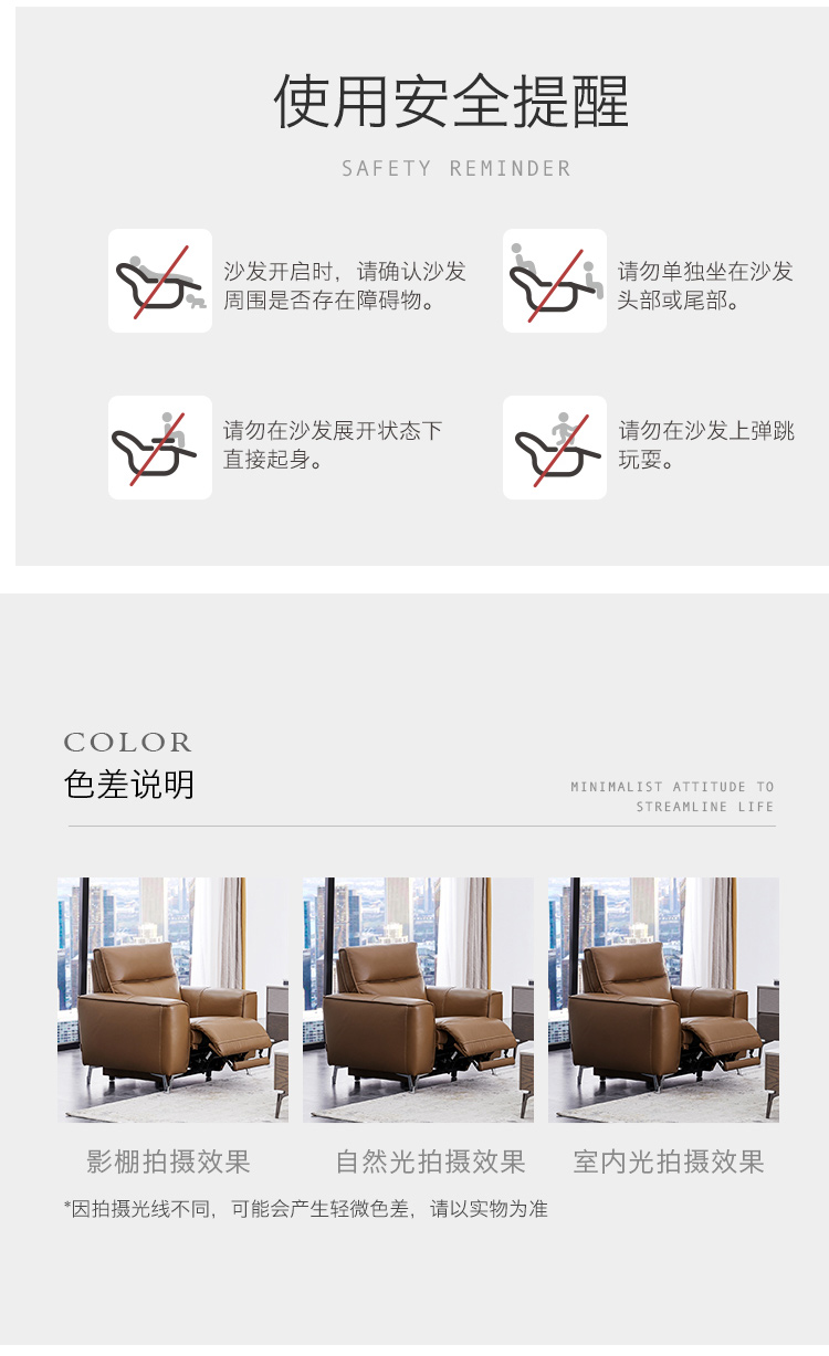 甄品家具 现代简约 接触面进口头层牛皮+进口 落叶松+高 回弹海绵+高承重碳 钢功能架+零靠墙锐迈电机+单电动功能 碳素钢脚 3米 三人位 单电动功能沙发