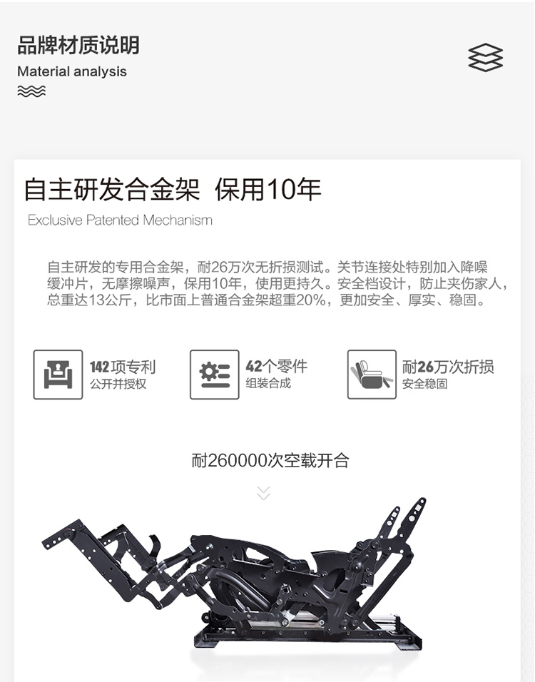 芝华仕 现代简约 接触面进口头层奶牛皮+PVC+合金钢架+进口实木+多层实木板+合金刚架脚+塑胶防刮胶套+太空绵+高回弹海绵 三人位【双电机】功能皮艺2.6米沙发