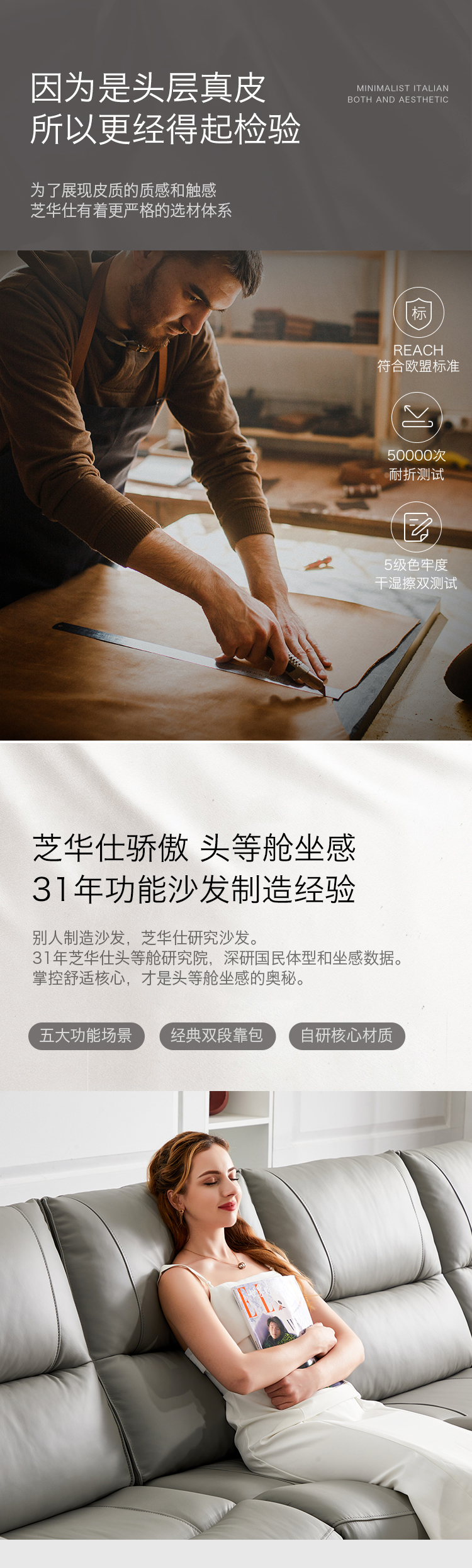 甄品家具 现代简约 接触面进口头层牛皮+进口 落叶松+高 回弹海绵+高承重碳 钢功能架+零靠墙锐迈电机+单电动功能 碳素钢脚 3米 三人位 单电动功能沙发