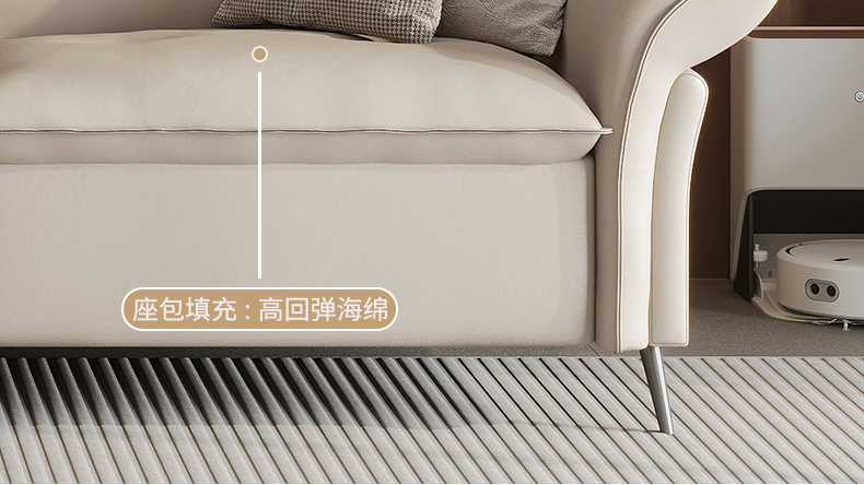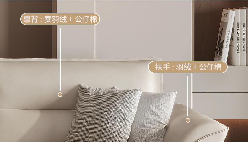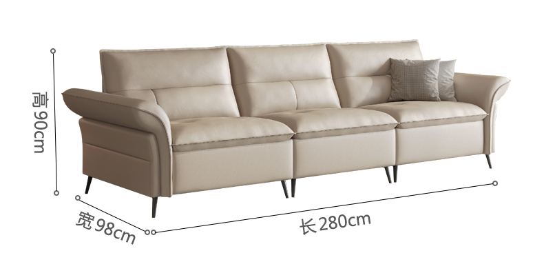 B系优选 现代简约 接触面头层黄牛皮+仿皮+E1级夹板+松木框架+无粉高密度海绵+靠包填充公仔棉 四人位 真皮2.8米沙发