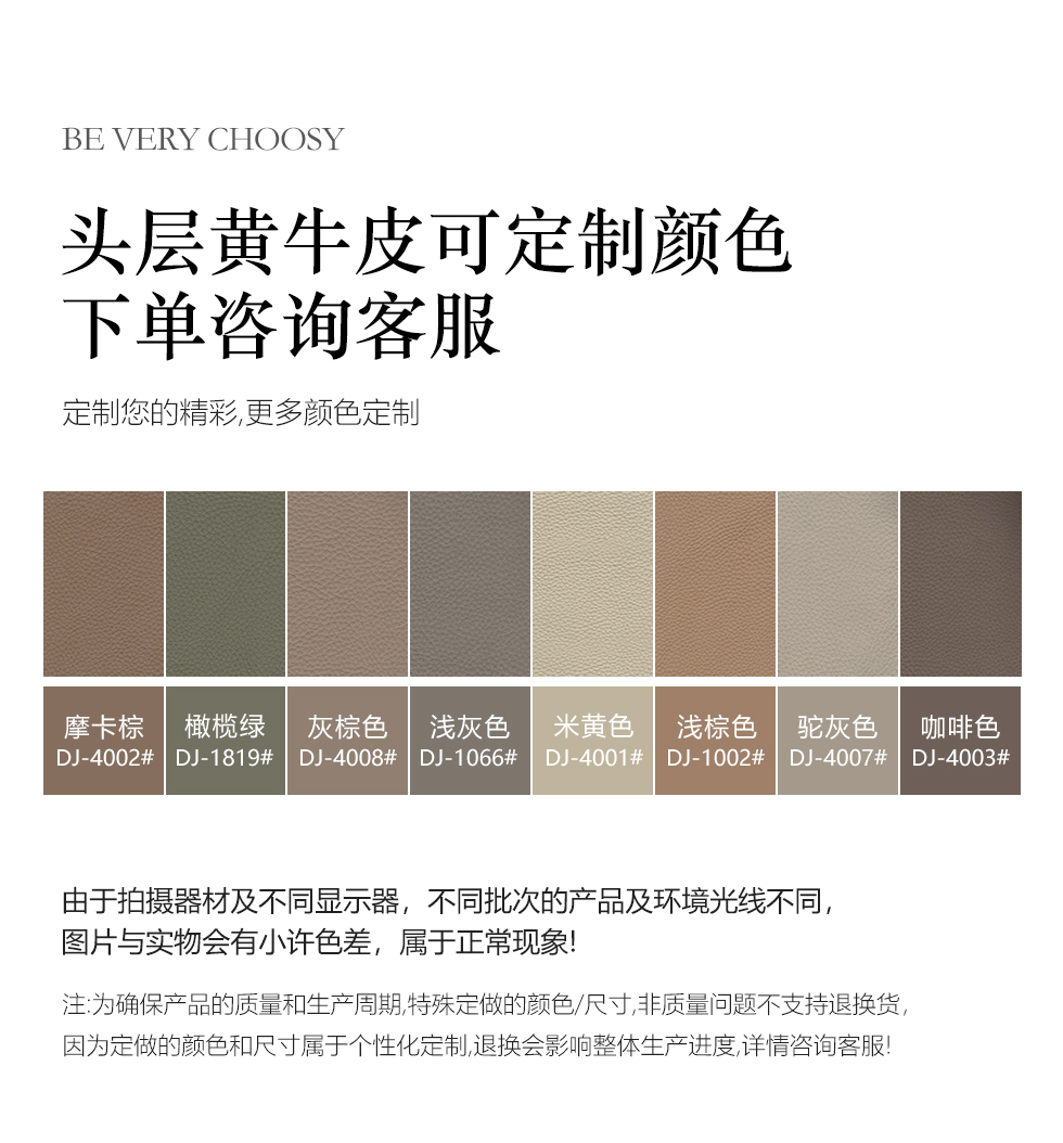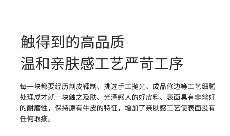 B系优选 现代简约 接触面头层黄牛皮+仿皮 E1级夹板+松木框架 无粉海绵 靠包赛羽绒+公仔棉填充 样色 直排3.2米四人位 皮艺沙发