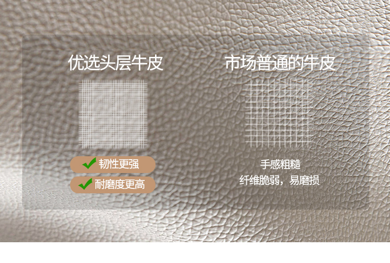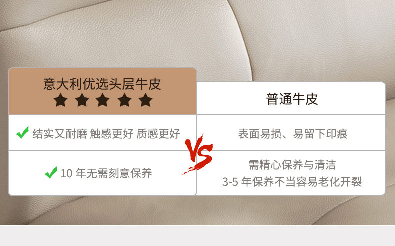 B系优选 现代简约 接触面中厚头层牛皮面料+进口俄罗斯松木框架+高回弹海绵+坐前真皮+仿真皮 四人位 3米沙发