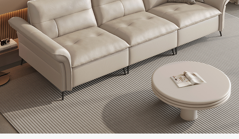 B系优选 现代简约 接触面中厚头层牛皮面料+进口俄罗斯松木框架+高回弹海绵+坐前真皮+仿真皮 四人位 3米沙发¥8155